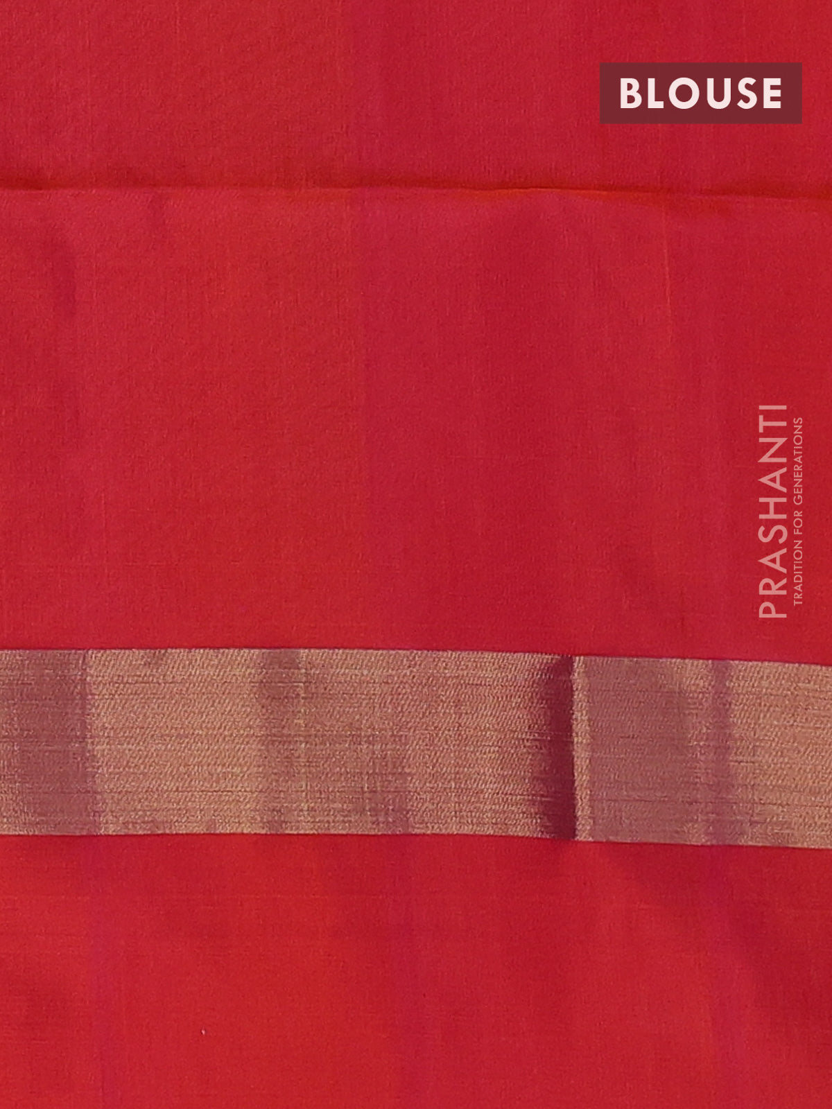 Pure soft silk saree mehendi green and dual shade of pinkish orange with silver & gold zari woven buttas and rich zari woven border