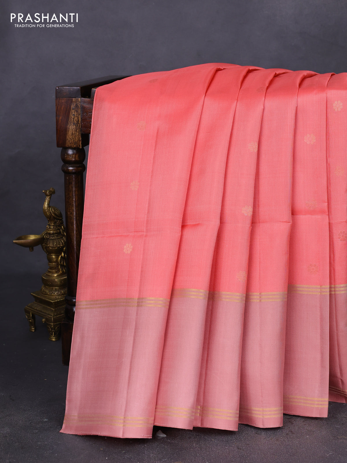 Pure soft silk saree peach pink and pastel peach with zari woven floral buttas and rettapet zari woven border