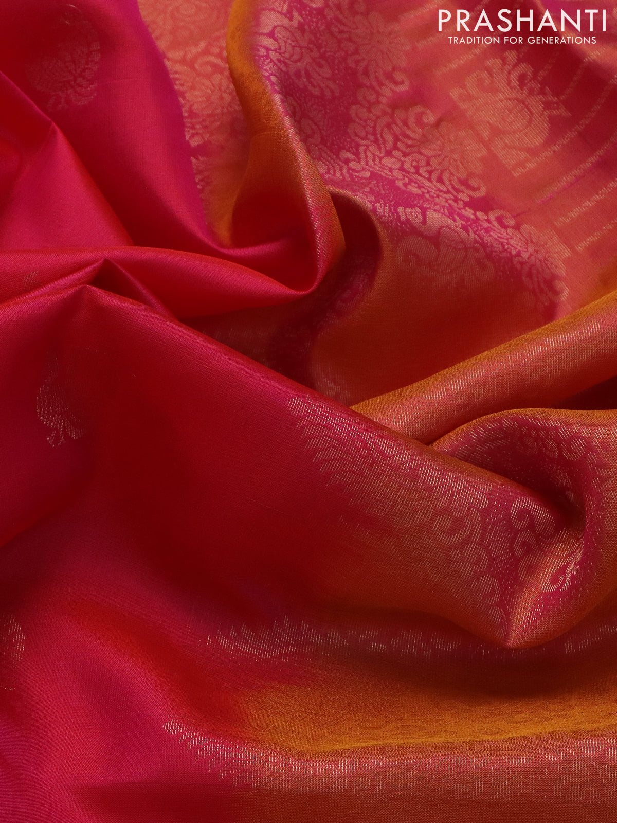 Pure soft silk saree pink and dual shade of rust with zari woven annam buttas and zari woven embroidery butta border