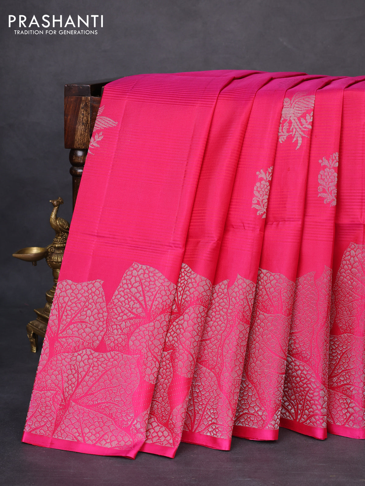 Pure soft silk saree pink with silver zari woven buttas and long silver zari woven border