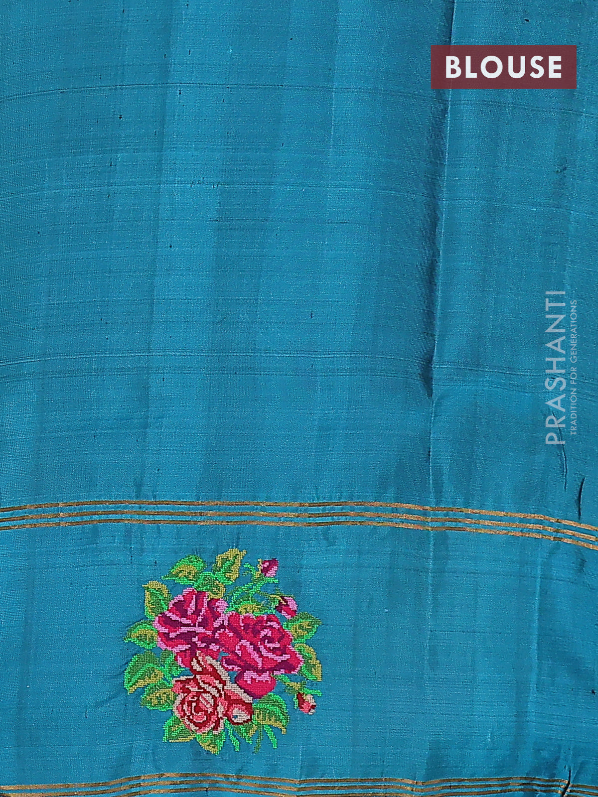 Pure soft silk saree purple and blue shade with allover zari woven butta and zari woven embroidery butta border