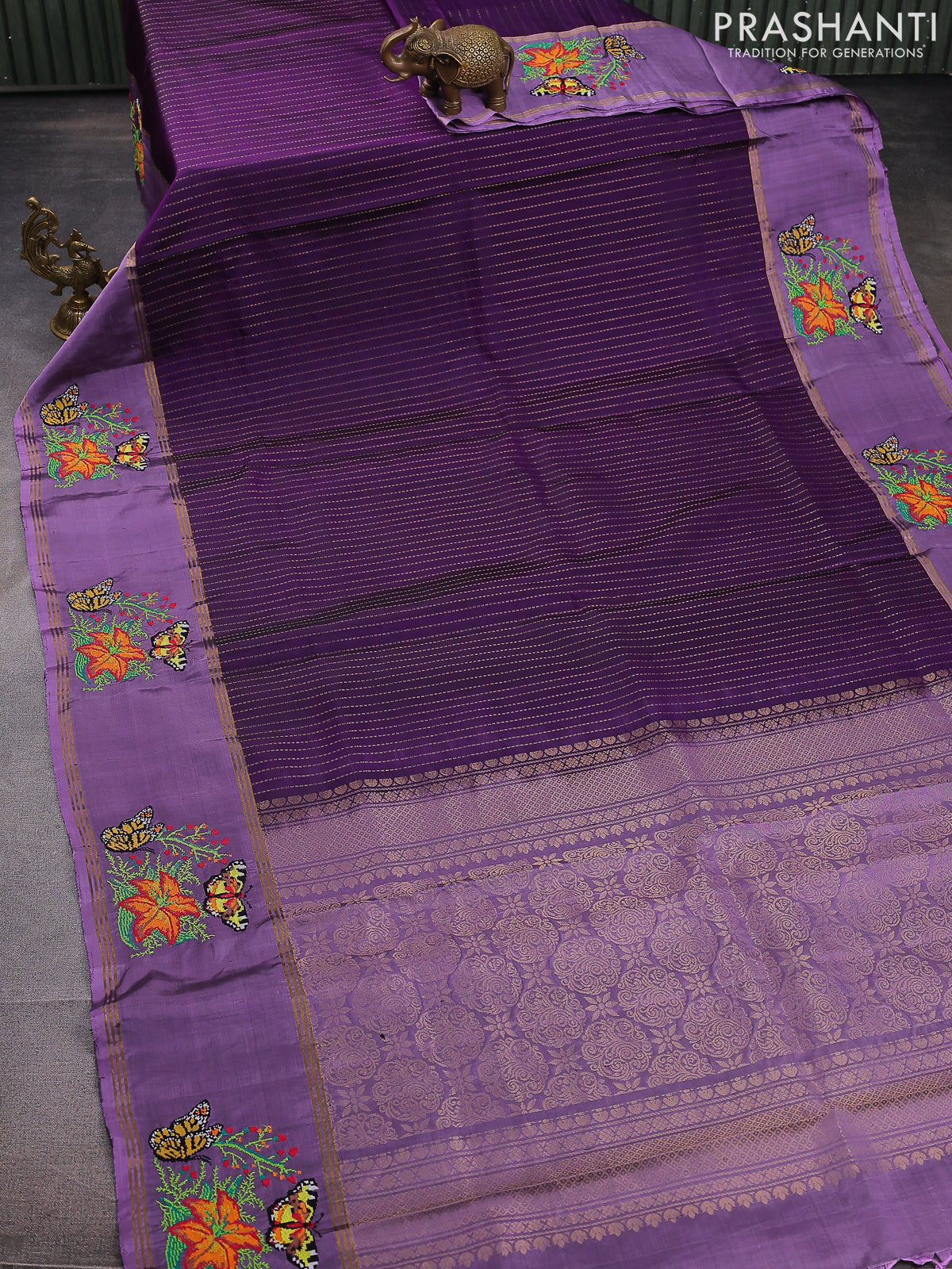 Pure soft silk saree purple and mild purple with allover zari weaves and zari woven embroidery butta border