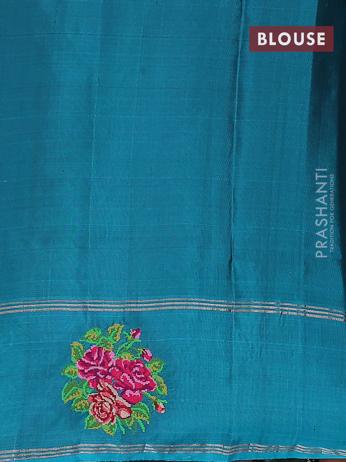 Pure soft silk saree purple and teal blue shade with allover silver zari woven butta weaves and zari woven embroidery butta border