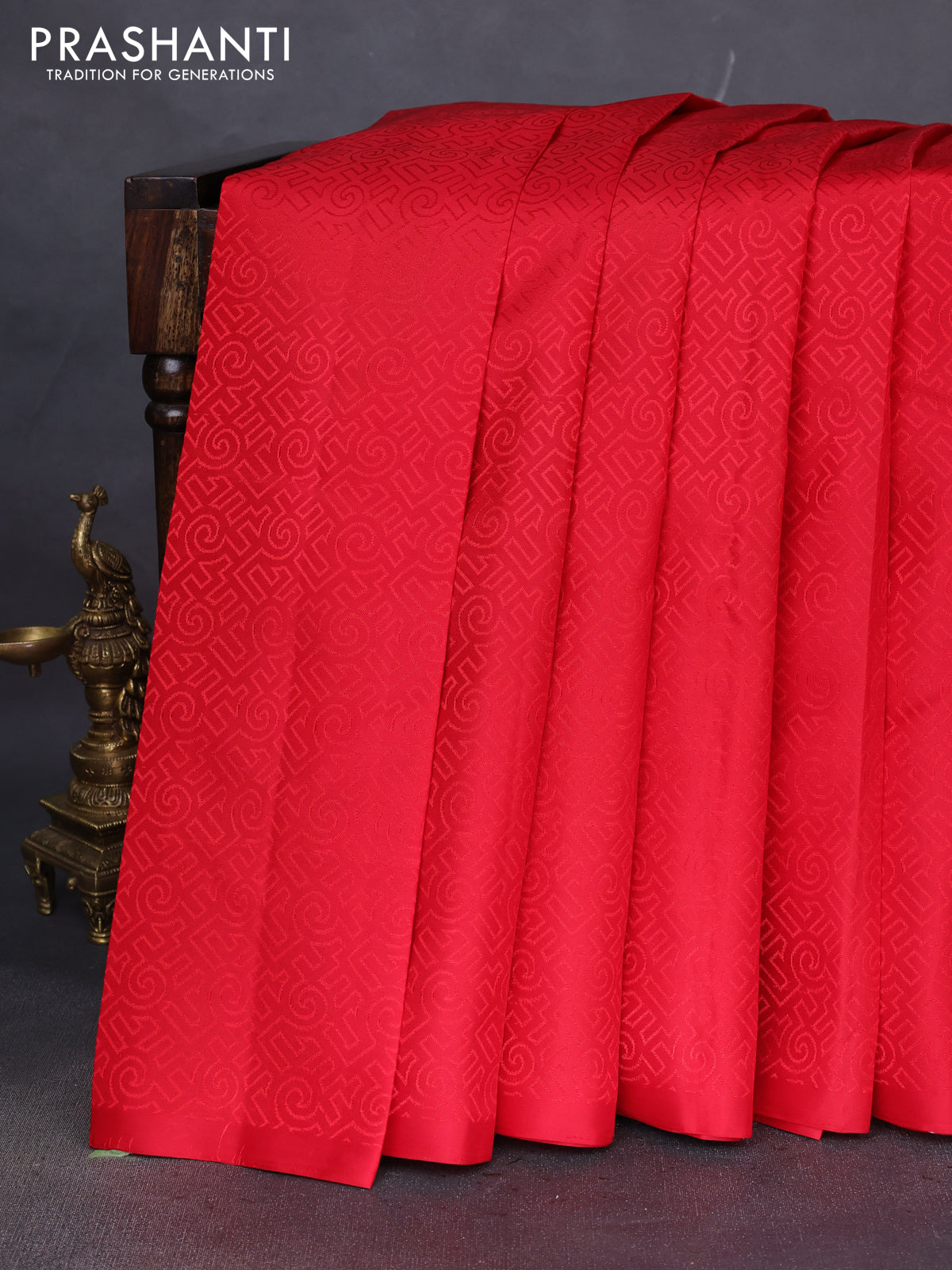 Pure soft silk saree red and teal blue with allover self emboss & zari buttas in borderless style