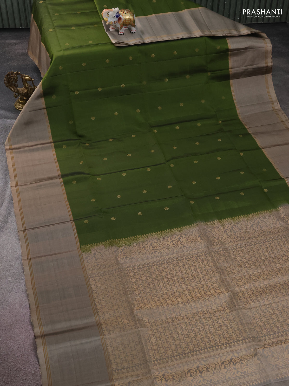 Pure soft silk saree sap green and grey shade with zari woven buttas and rettapet zari woven border