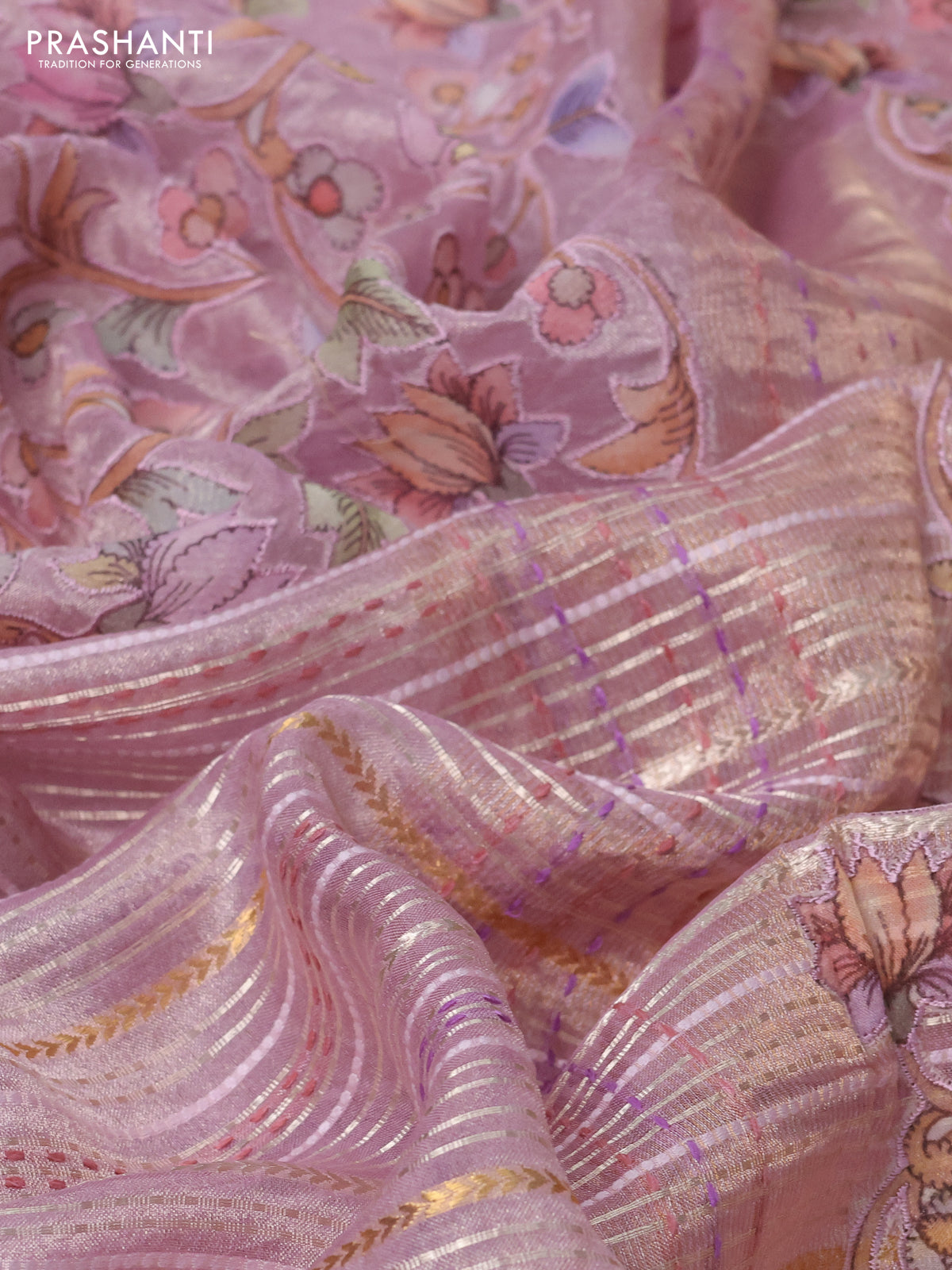 Pure tissue silk saree pastel pink with half & half style kalamkari applique