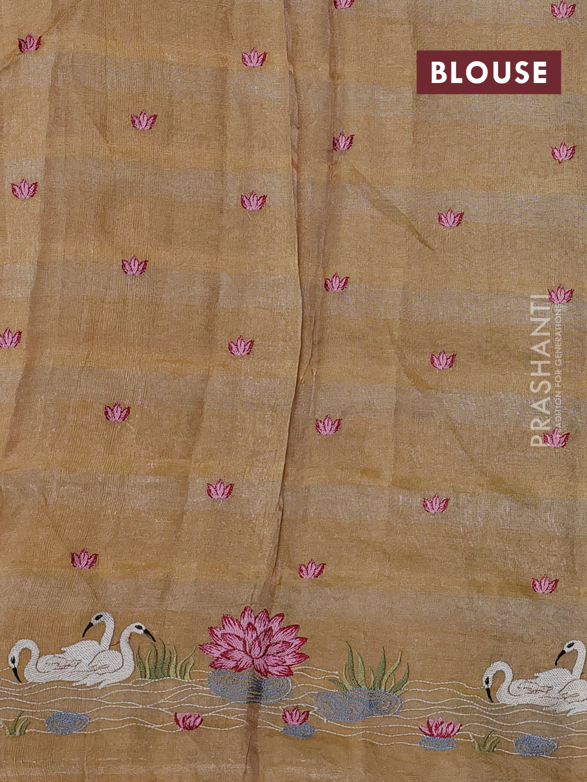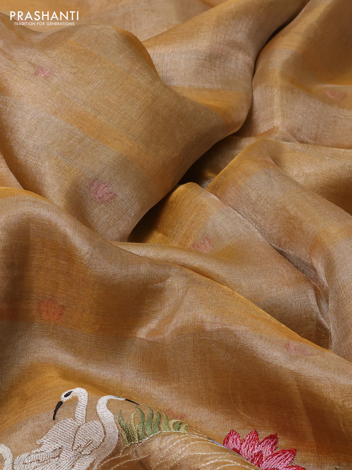 Pure tissue silk saree sandal with allover stripe pattern and embroidery border