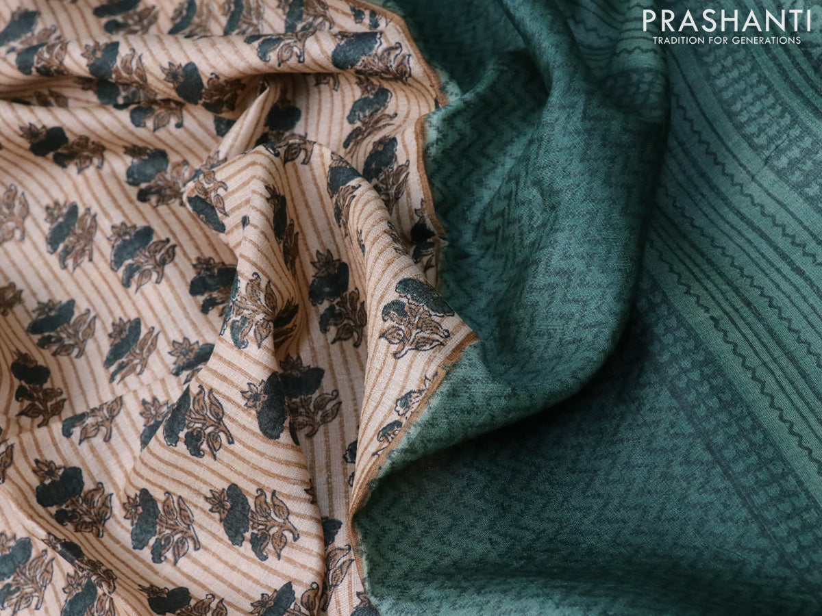 Pure tussar silk saree beige and green shade with allover floral butta prints and printed border