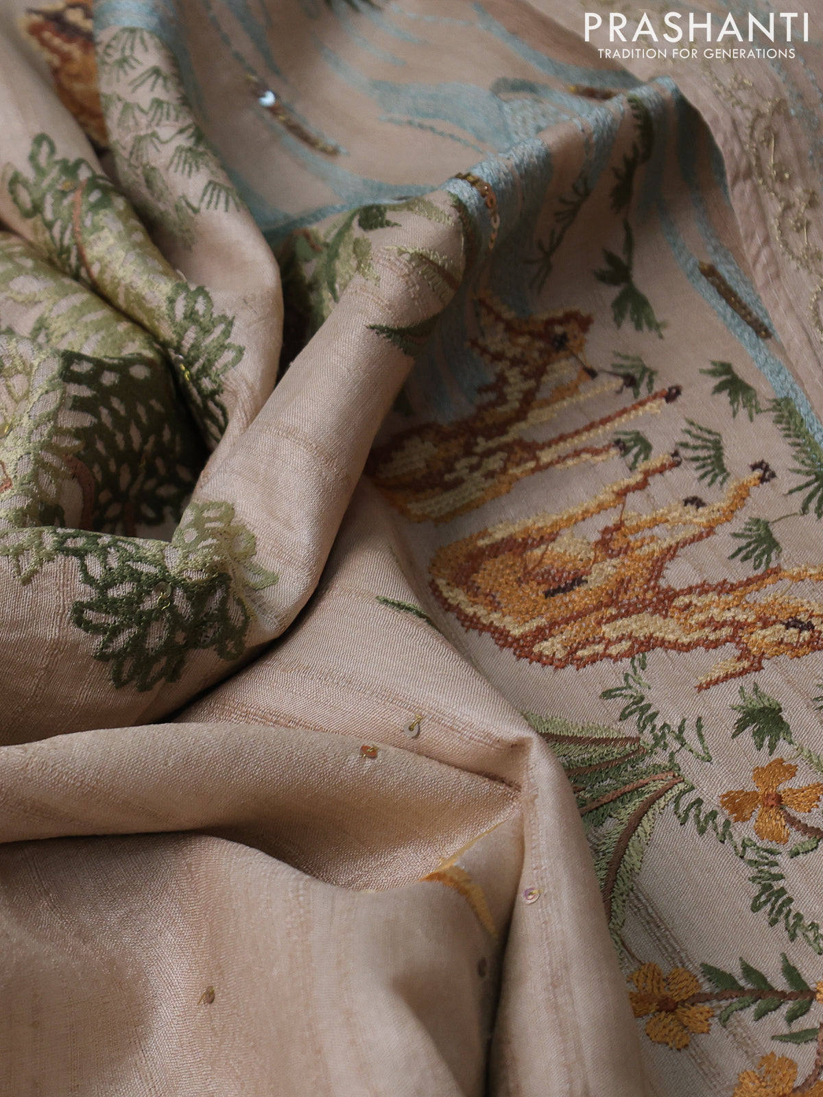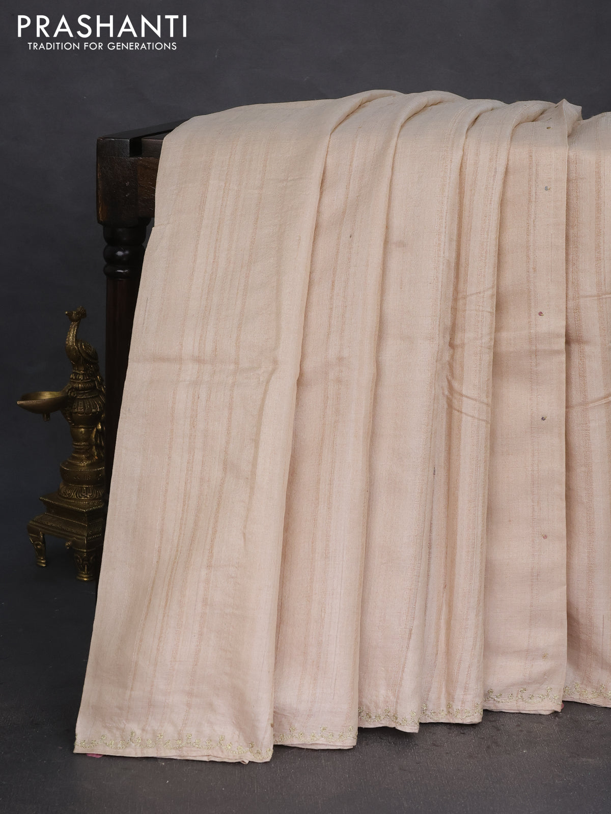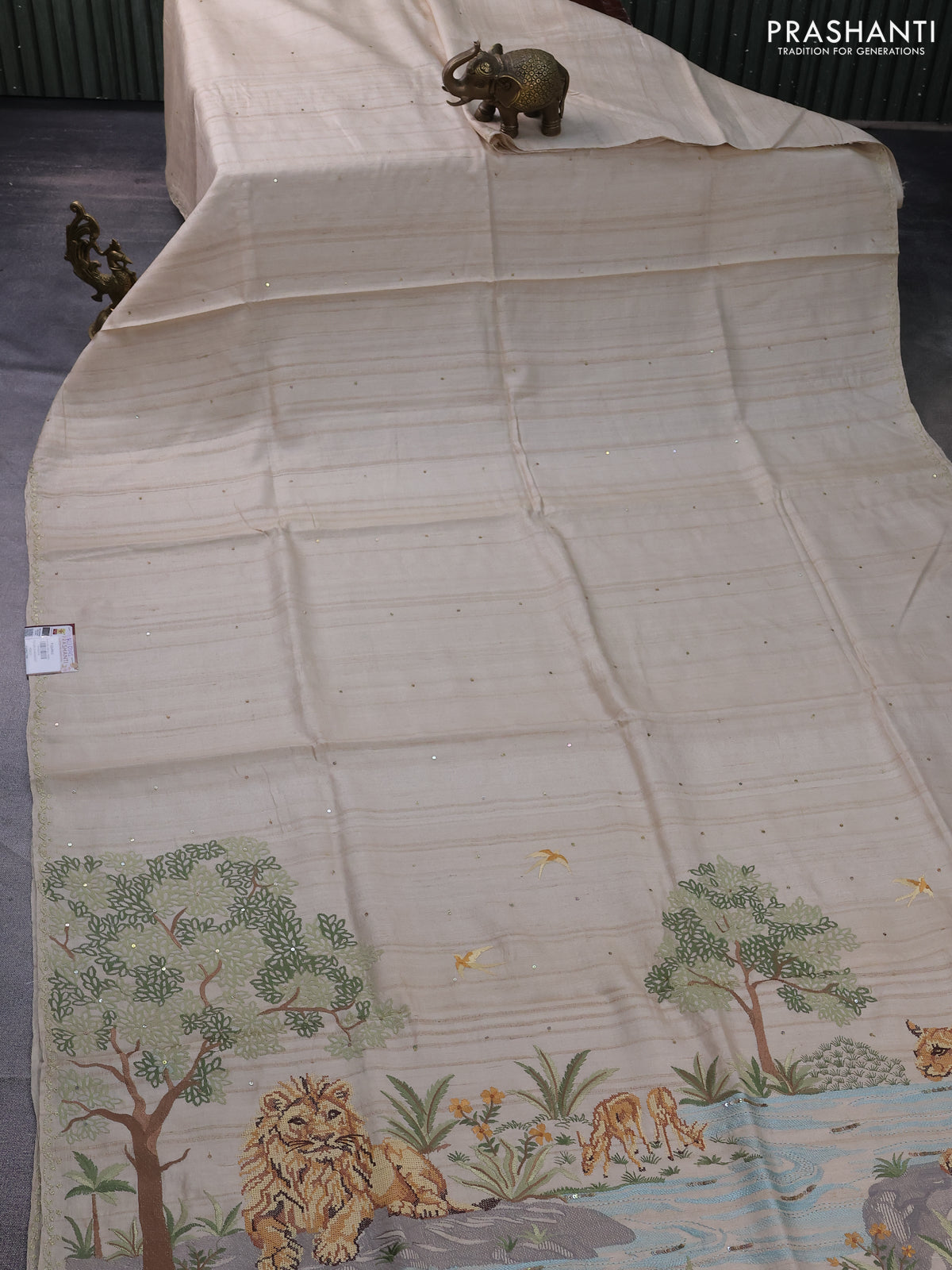 Material : Pure Tussar Silk SILK MARK CERTIFIED Blouse : Attached Length of saree : 6.2 mts (5.5 mts saree... Read more