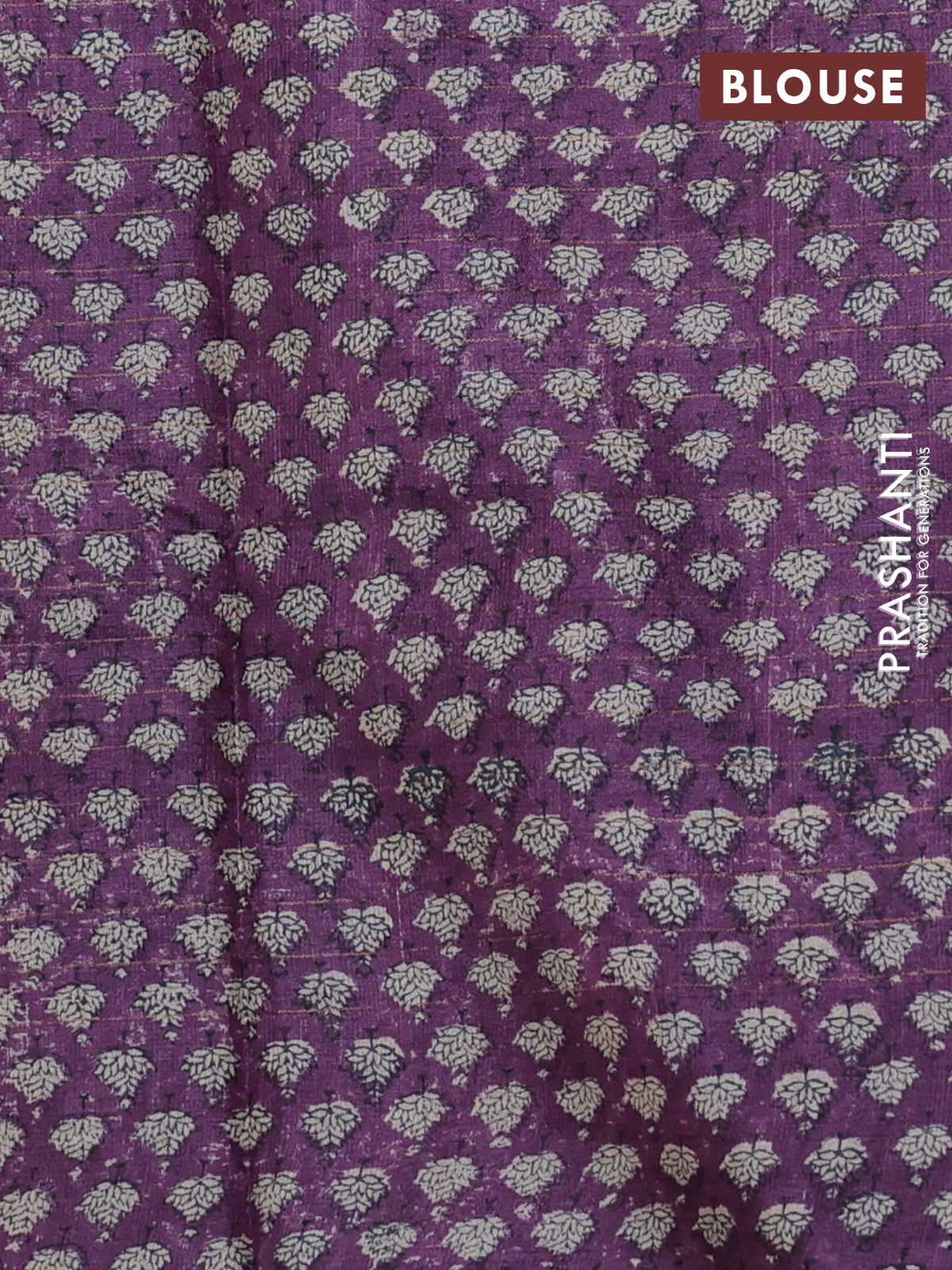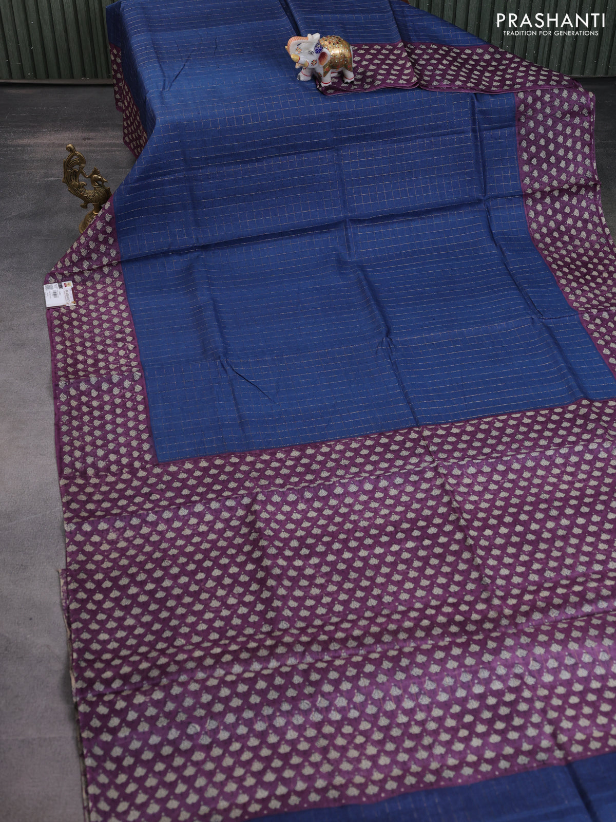 Pure tussar silk saree blue and purple shade with allover zari checked pattern and printed border
