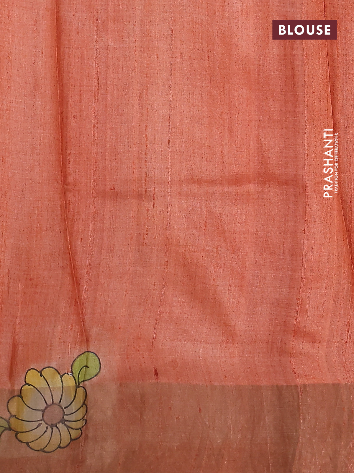 Material :Pure Tussar Silk SILK MARK CERTIFIED Blouse : Attached Length of saree : 6.2 mts (5.5 mts saree &... Read more