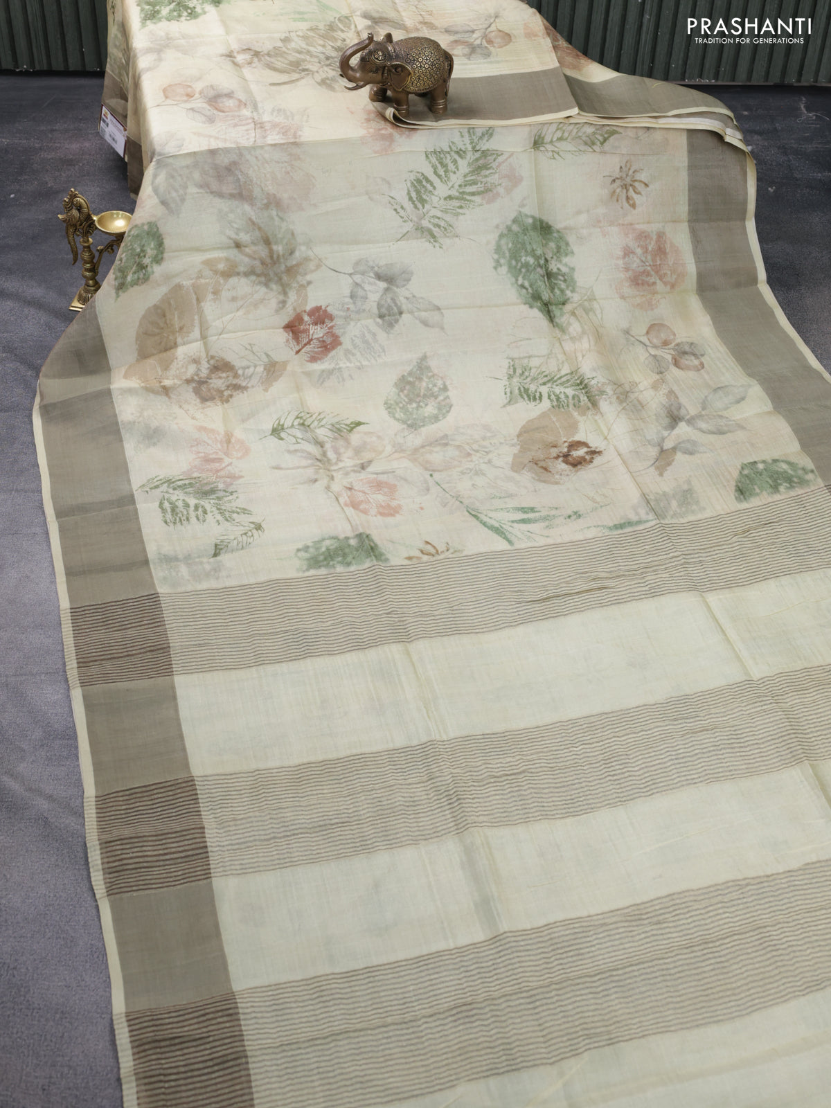Pure tussar silk saree cream with allover digital prints and zari woven border