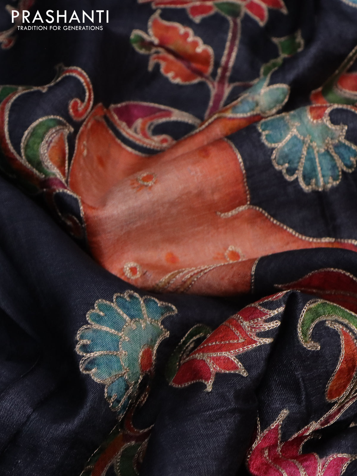 Pure tussar silk saree elephant grey with pichwai prints & pita work