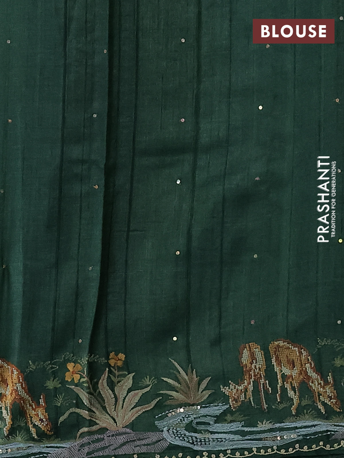 Material : Pure Tussar Silk SILK MARK CERTIFIED Blouse : Attached Length of saree : 6.2 mts (5.5 mts saree... Read more
