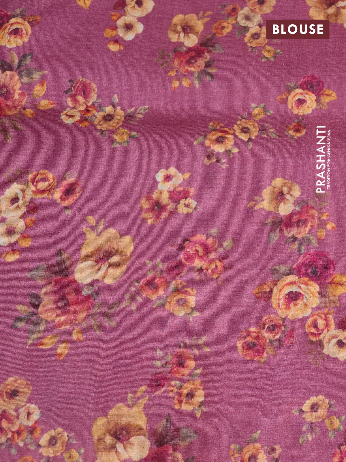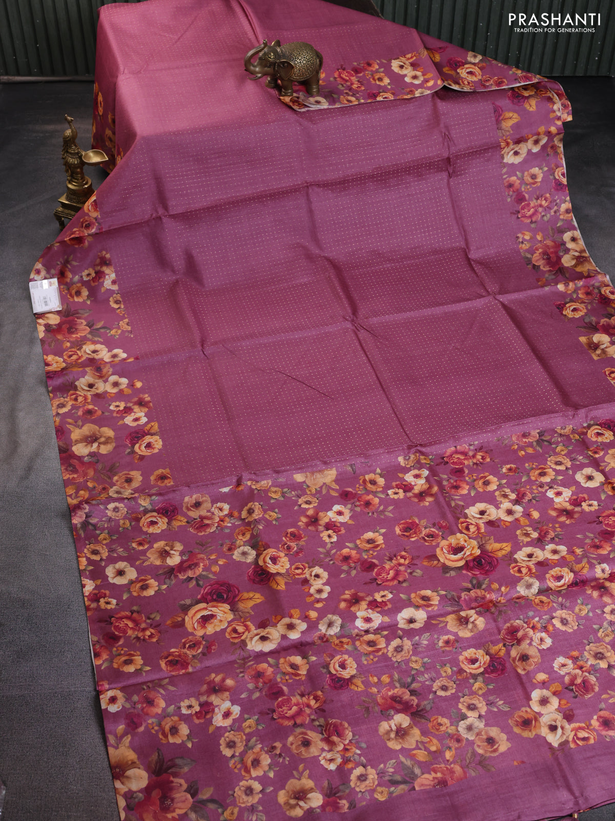 Pure tussar silk saree mauve pink with allover zari weaves and floral digital printed border