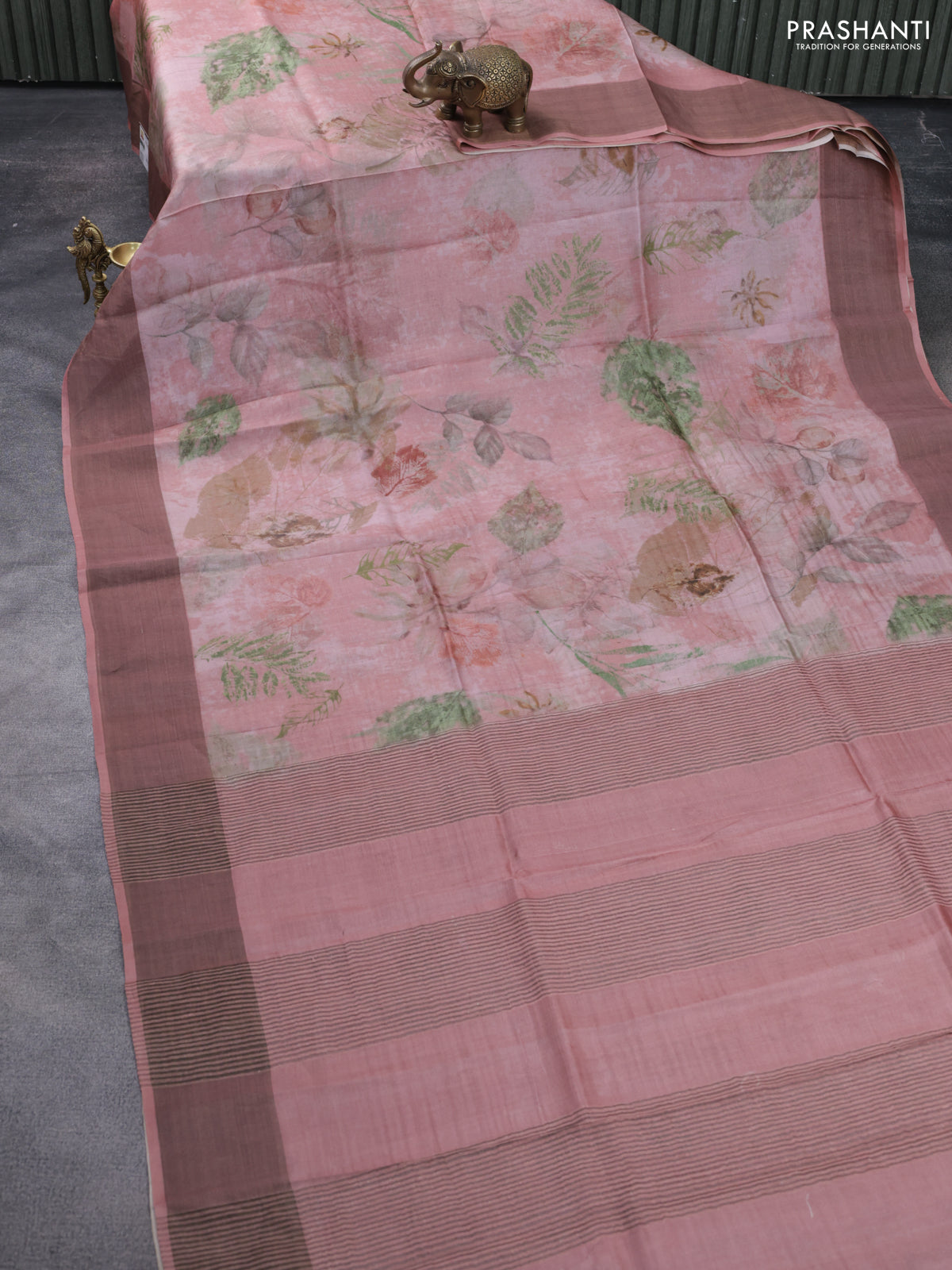 Pure tussar silk saree pastel pink with allover digital prints and zari woven border