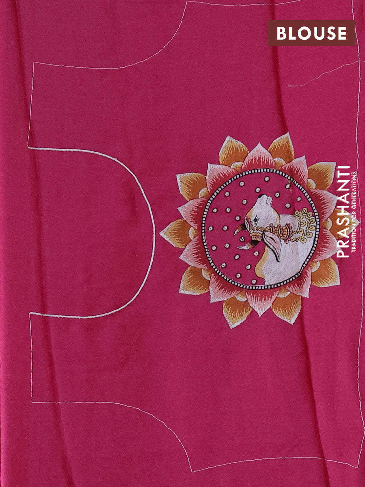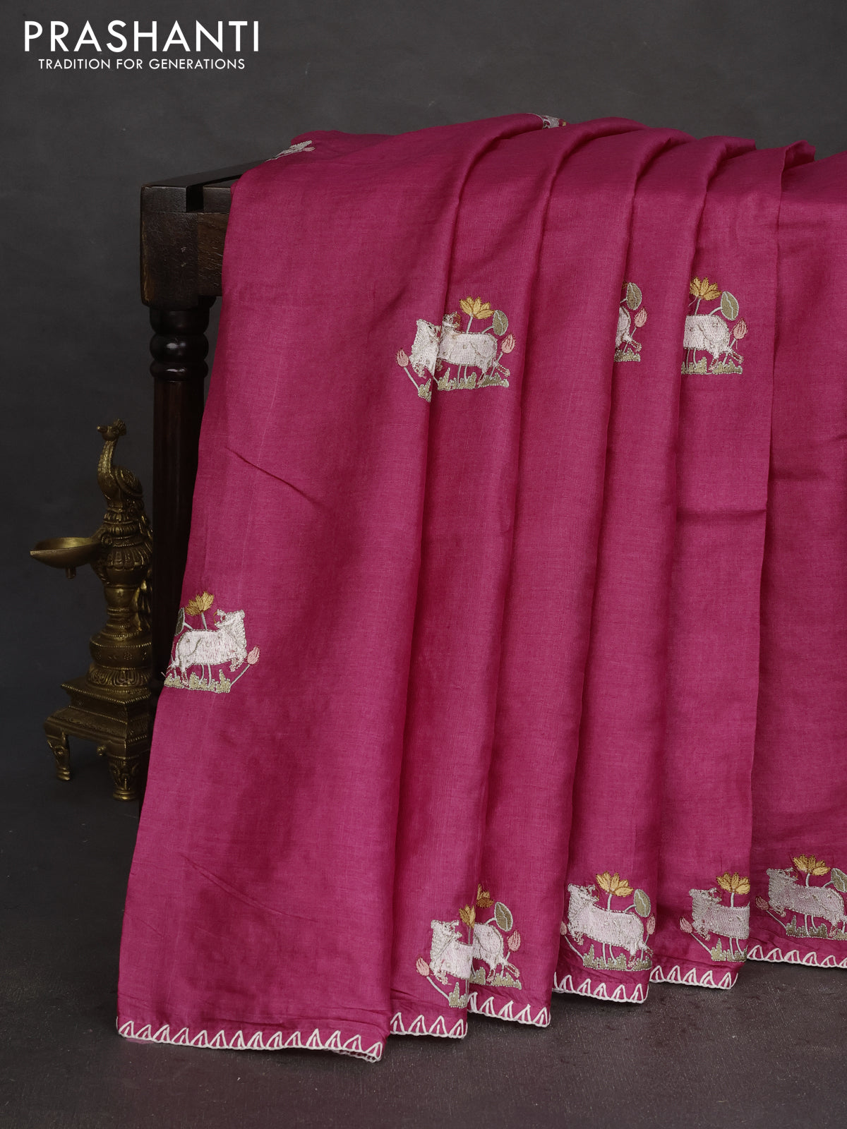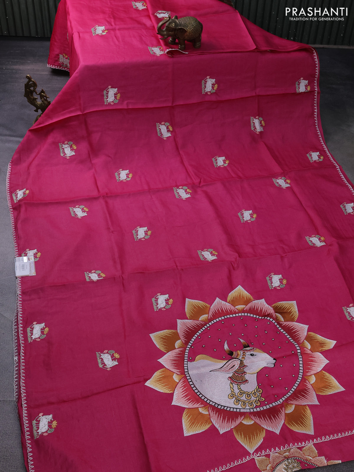 Pure tussar silk saree pink with pichwai design embroidery work buttas and simple border