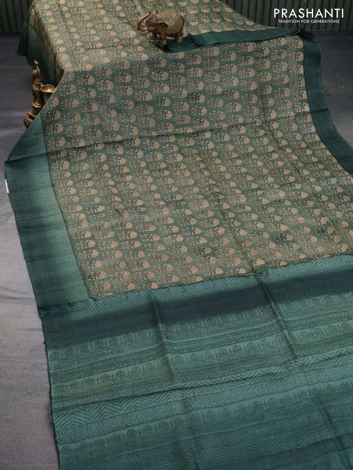 Pure tussar silk saree sap green shade with allover floral butta prints and printed border