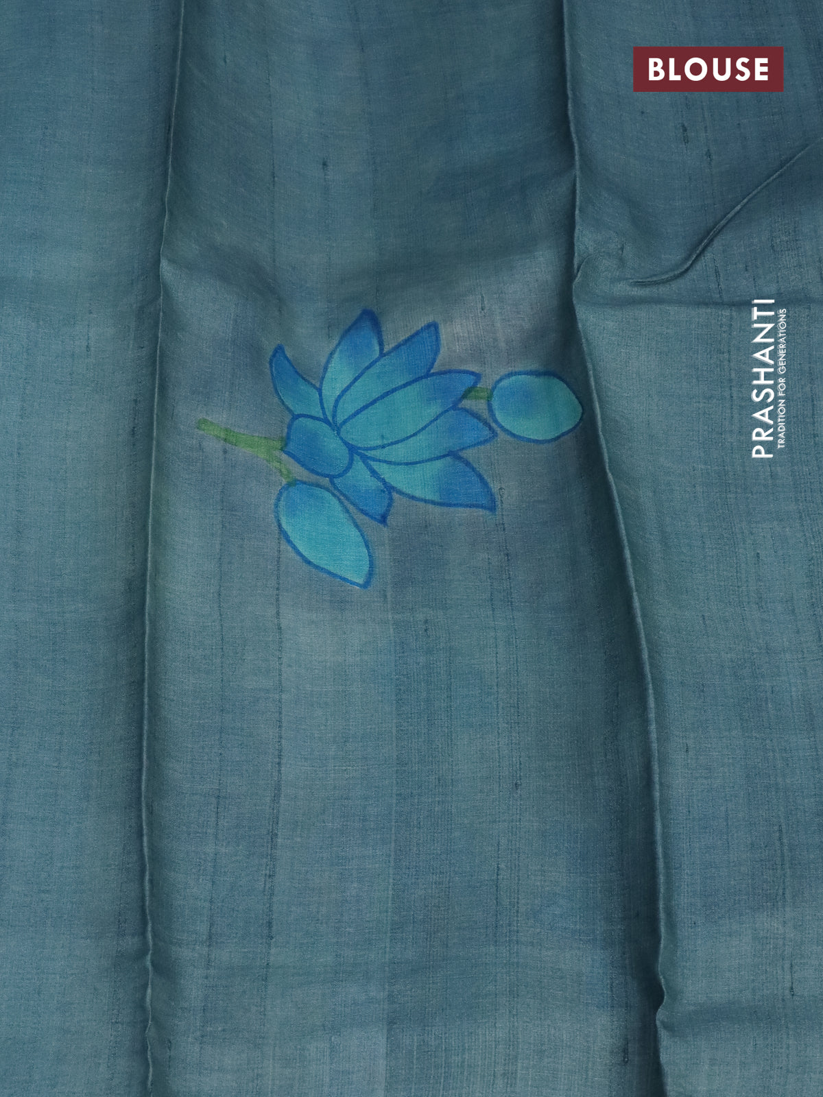 Pure tussar silk saree teal blue and bluish grey with plain body and pichwai hand painted pallu & border