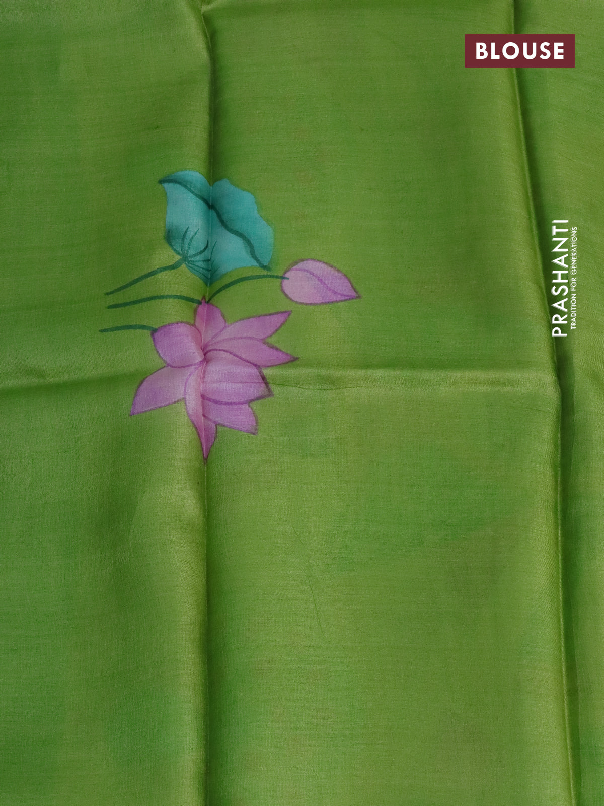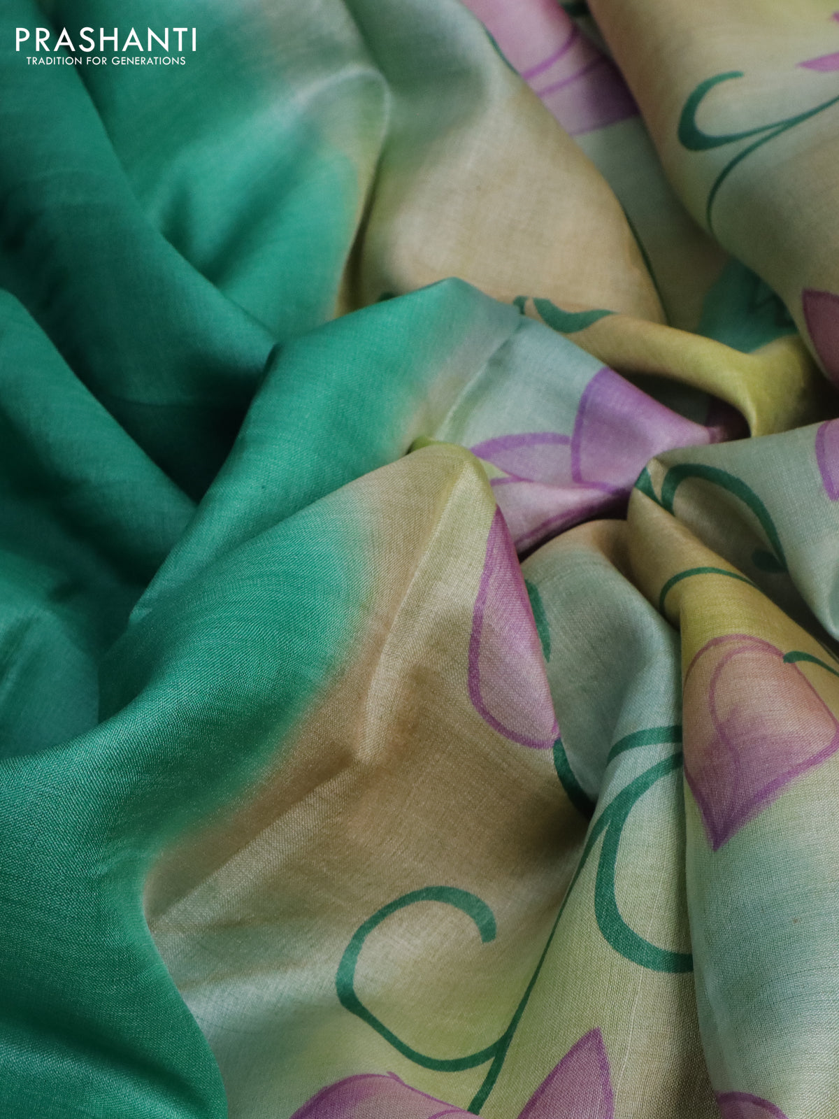 Pure tussar silk saree teal green shade and green with plain body and pichwai hand painted pallu & border