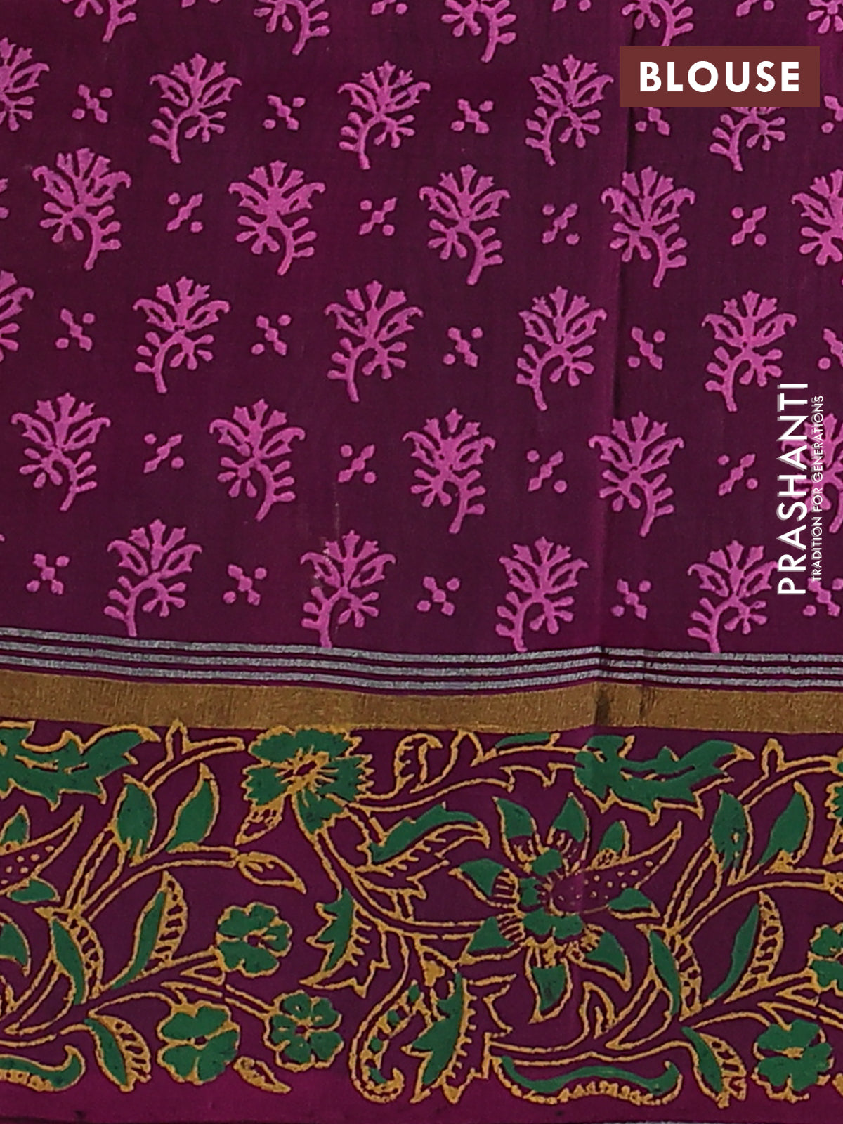 Pure uppada block printed silk saree green and purple with floral butta prints and zari woven printed border