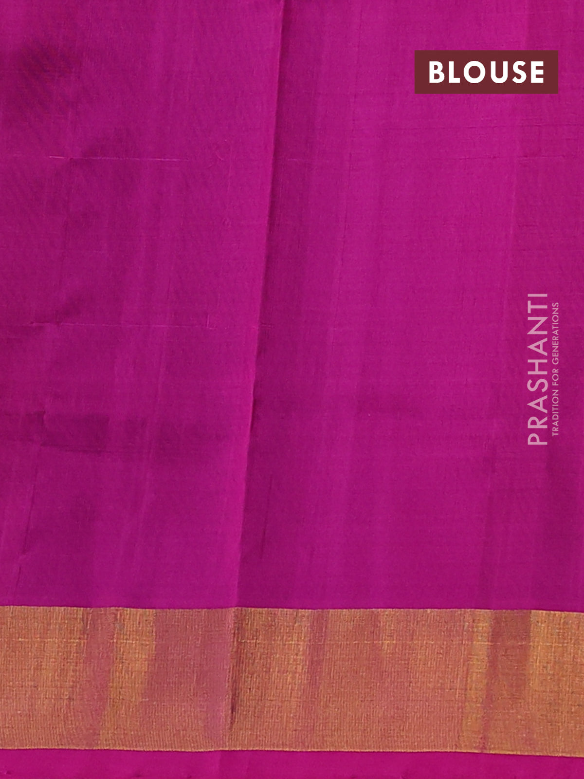 Pure uppada silk saree black and magenta pink with zari woven coin buttas in borderless style