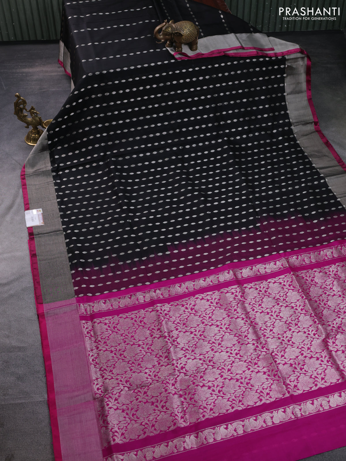 Pure uppada silk saree black and pink with allover silver zari woven buttas and zari woven border