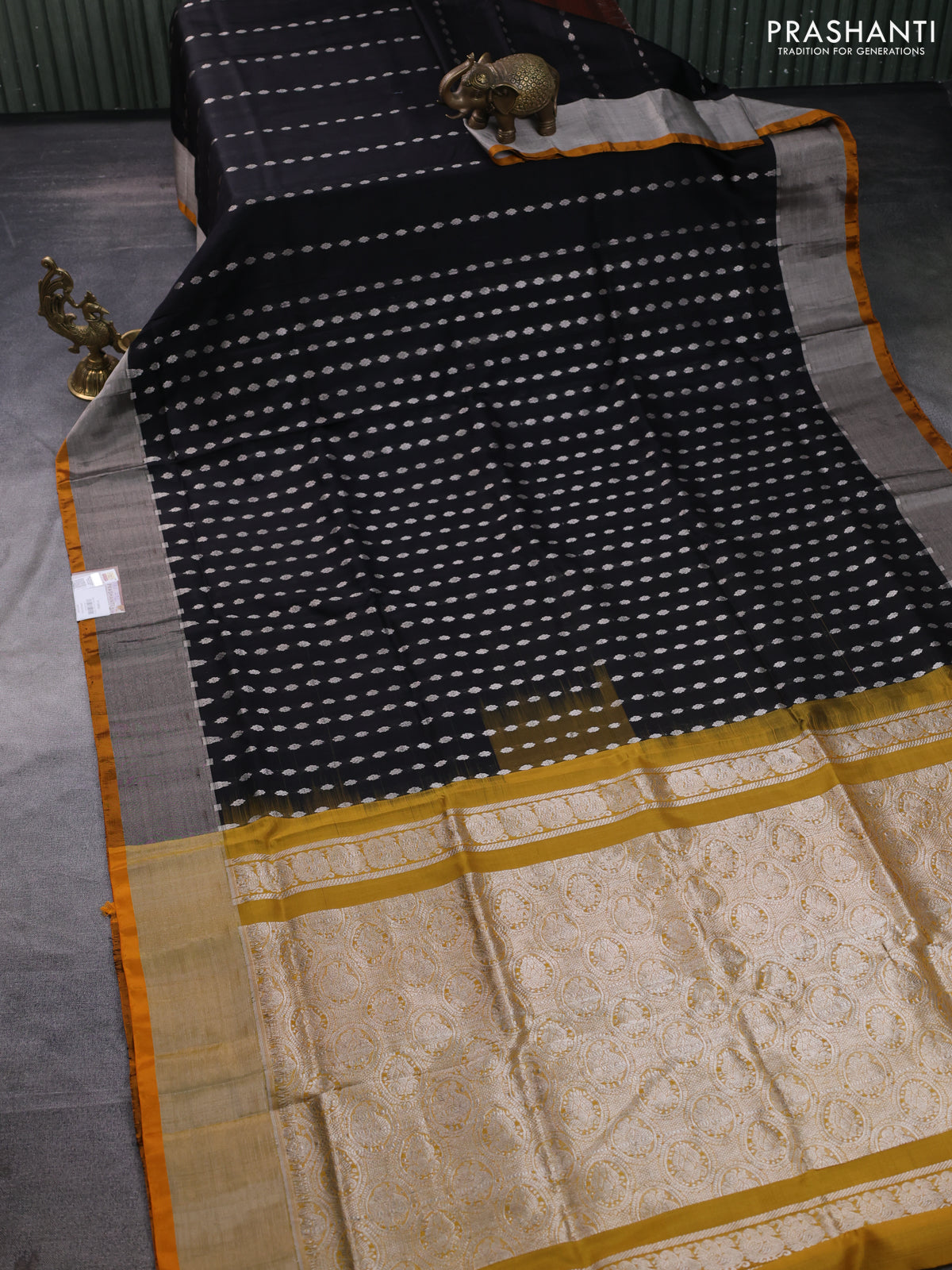 Pure uppada silk saree black and yellow with allover silver zari woven buttas and zari woven border
