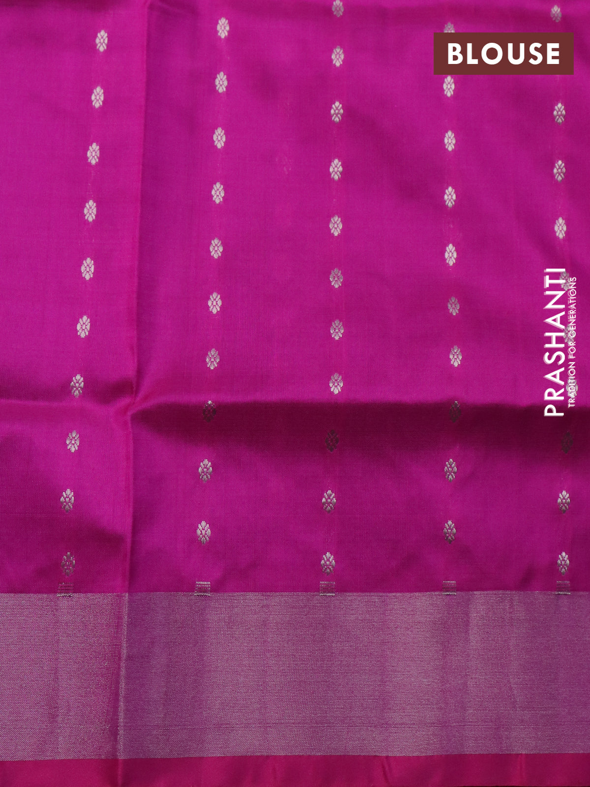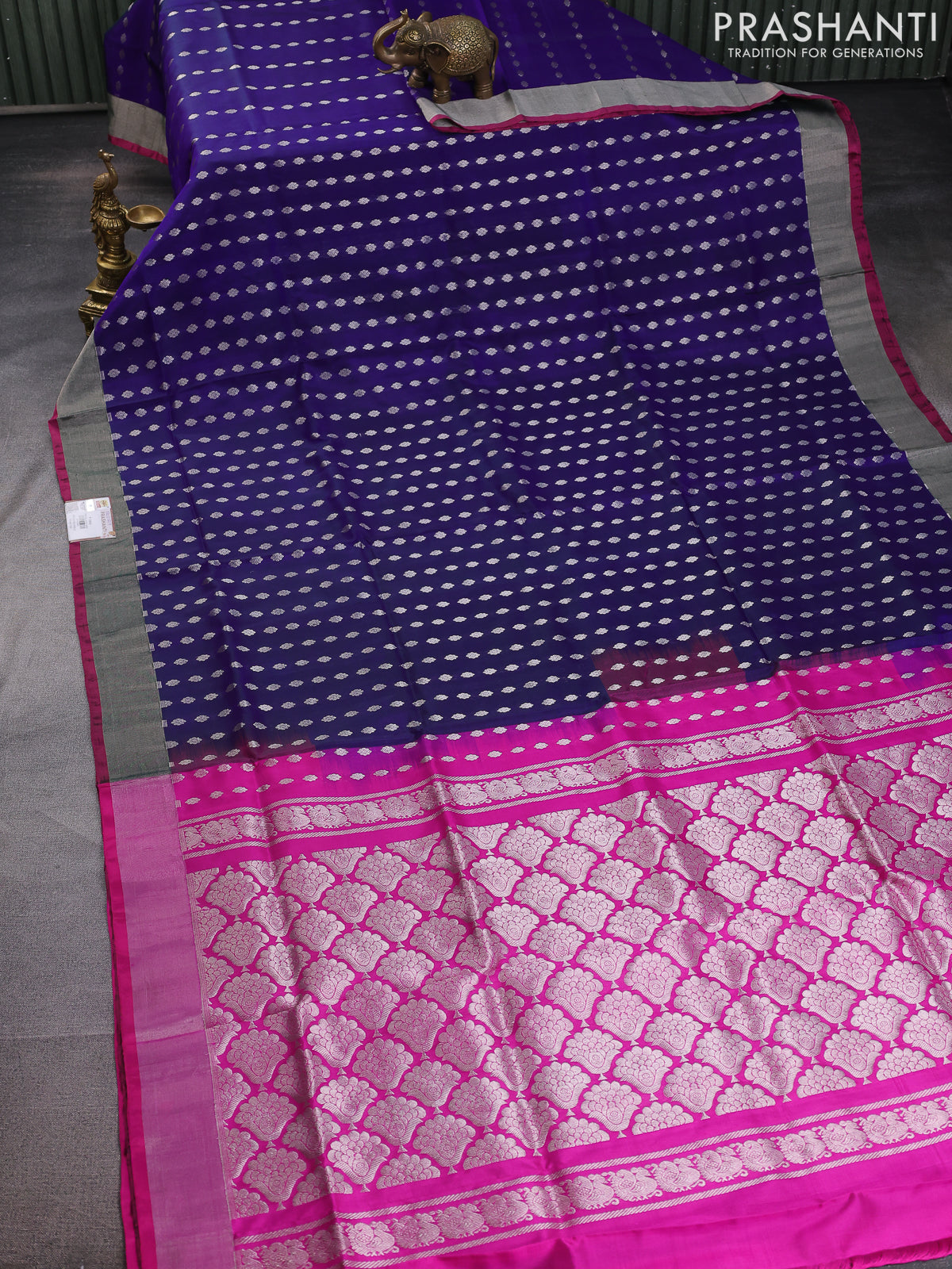 Pure uppada silk saree blue and pink with allover silver zari woven buttas and silver zari woven border