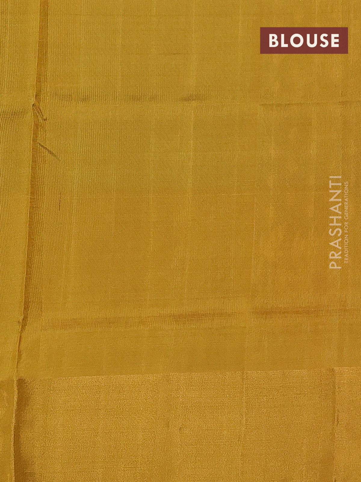 Pure uppada silk saree dark green and yellow with allover zari woven thilak buttas and long floral design zari woven border