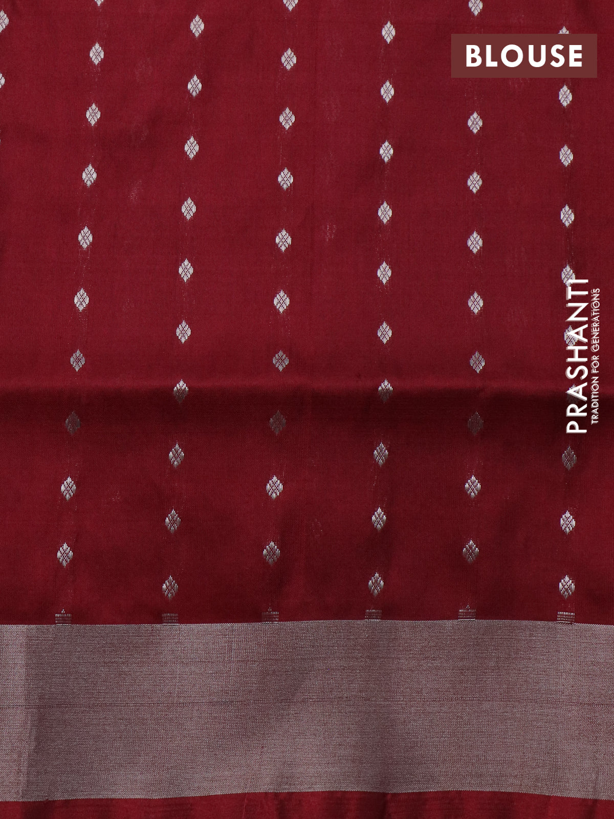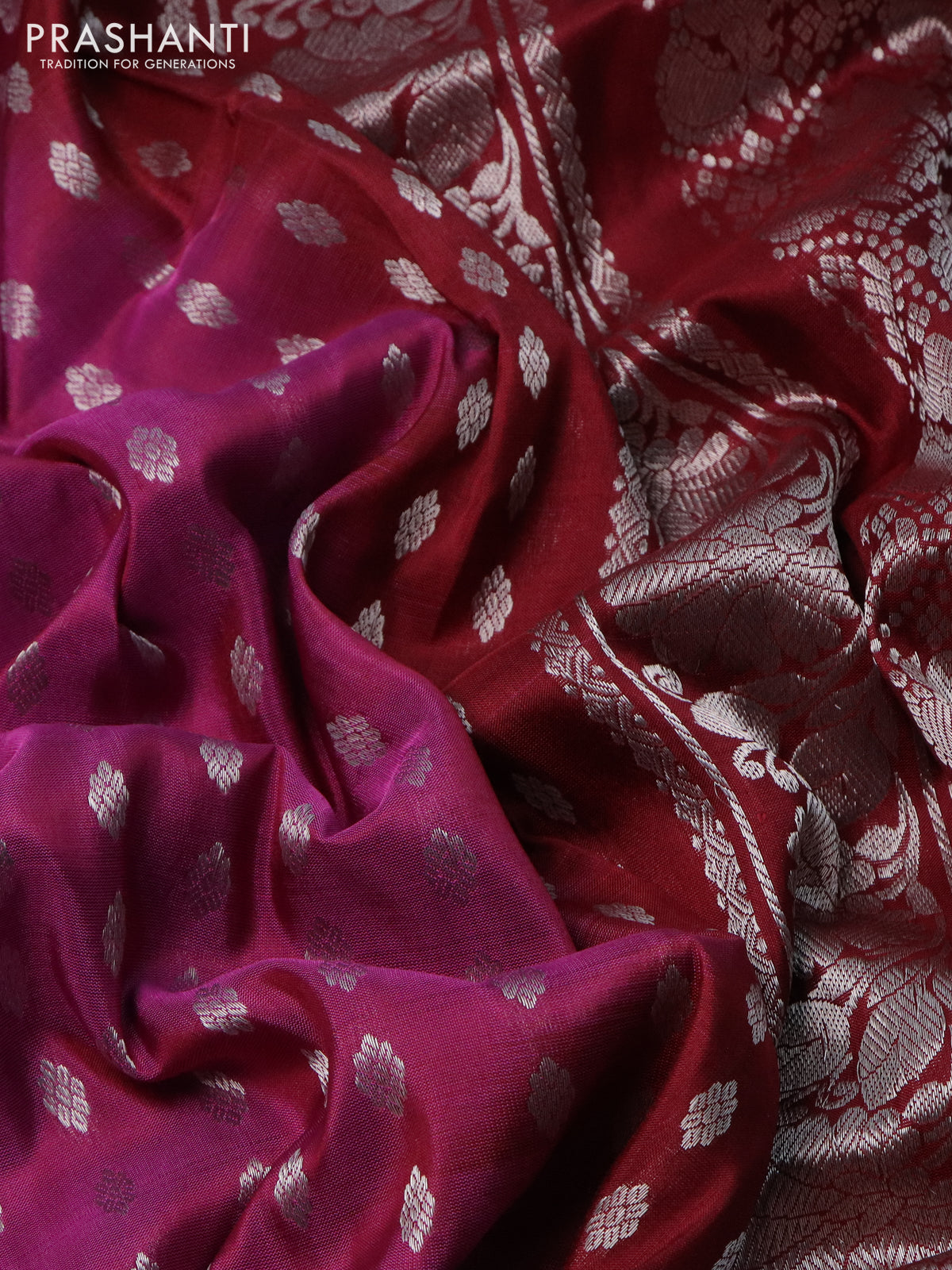 Pure uppada silk saree magenta pink and maroon with allover silver zari woven buttas and silver zari woven border