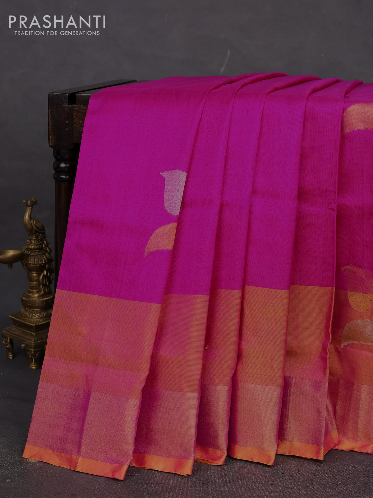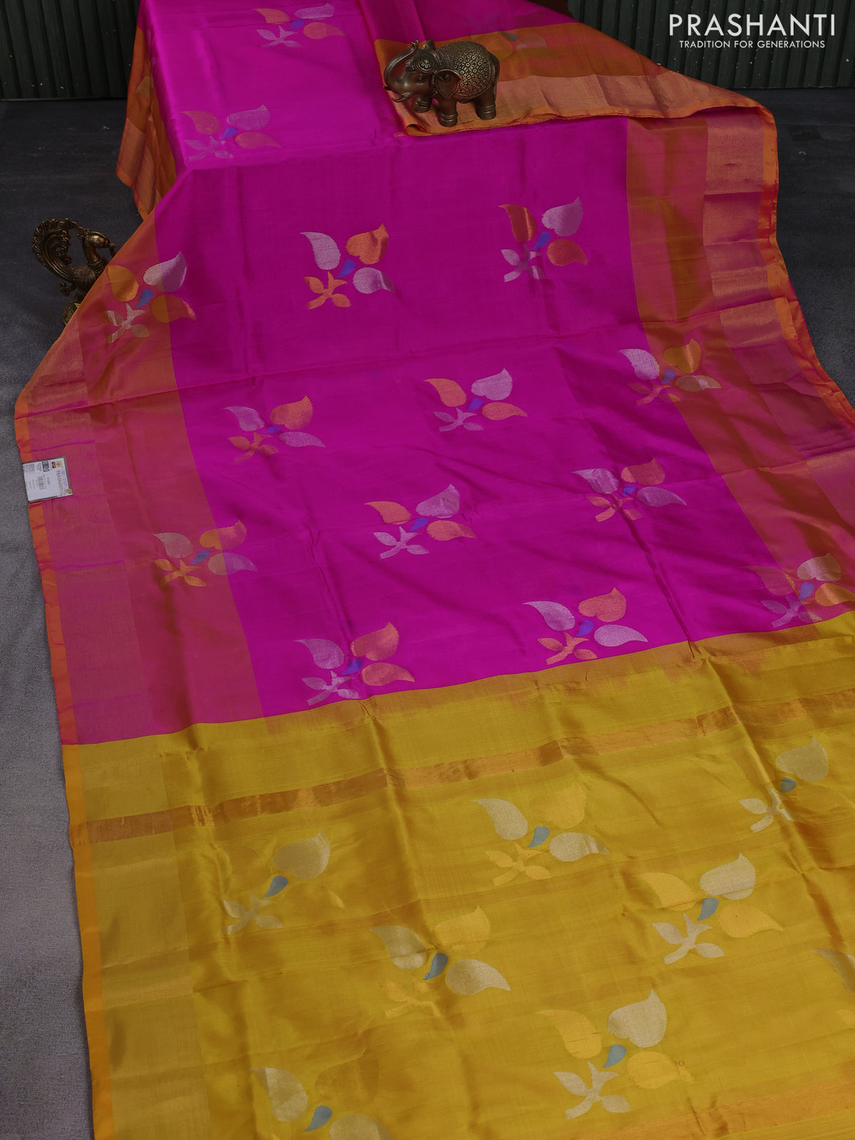 Pure uppada silk saree pink and dual shade of yellow with zari woven jamdhani design buttas and zari woven border