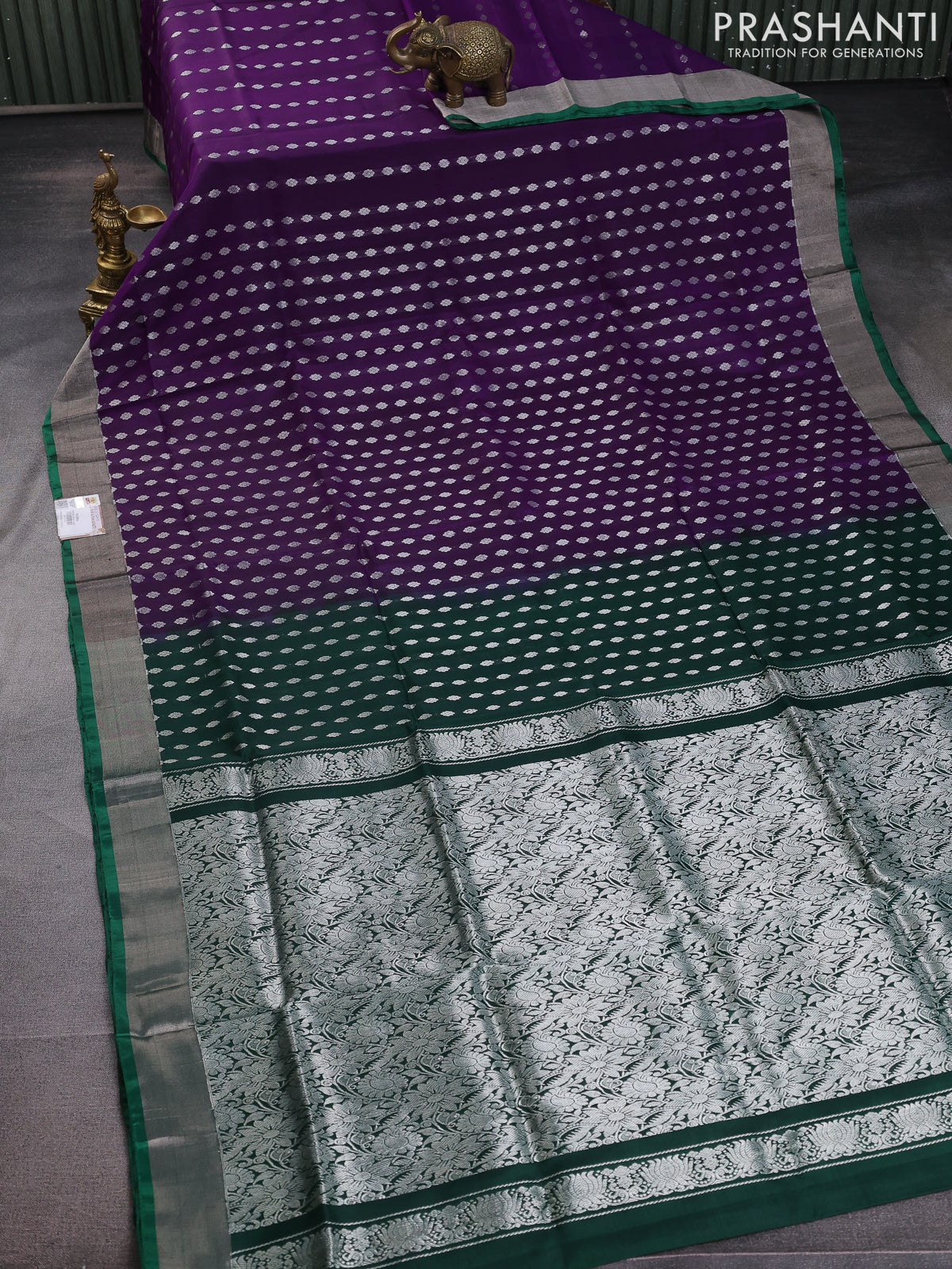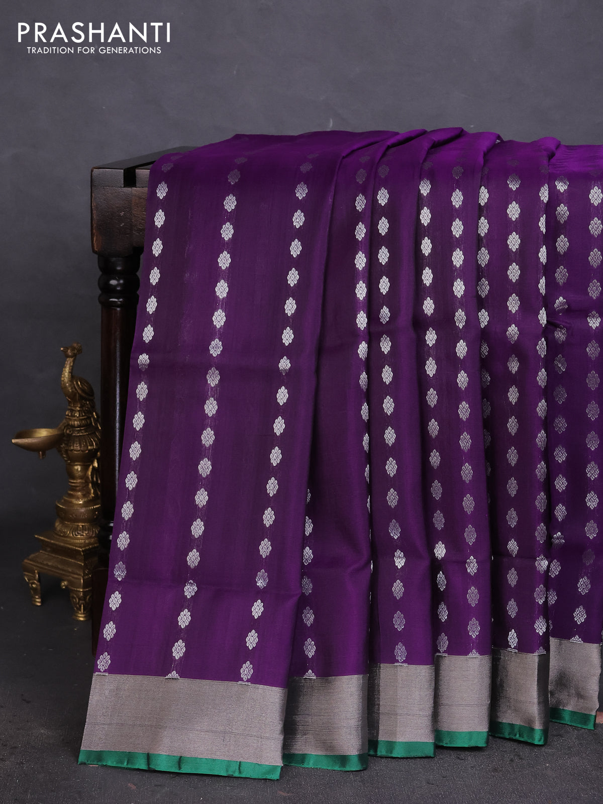 Pure uppada silk saree violet and green with allover silver zari woven buttas and silver zari woven border