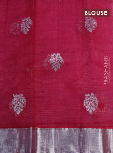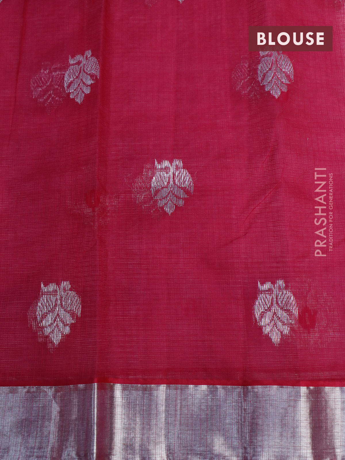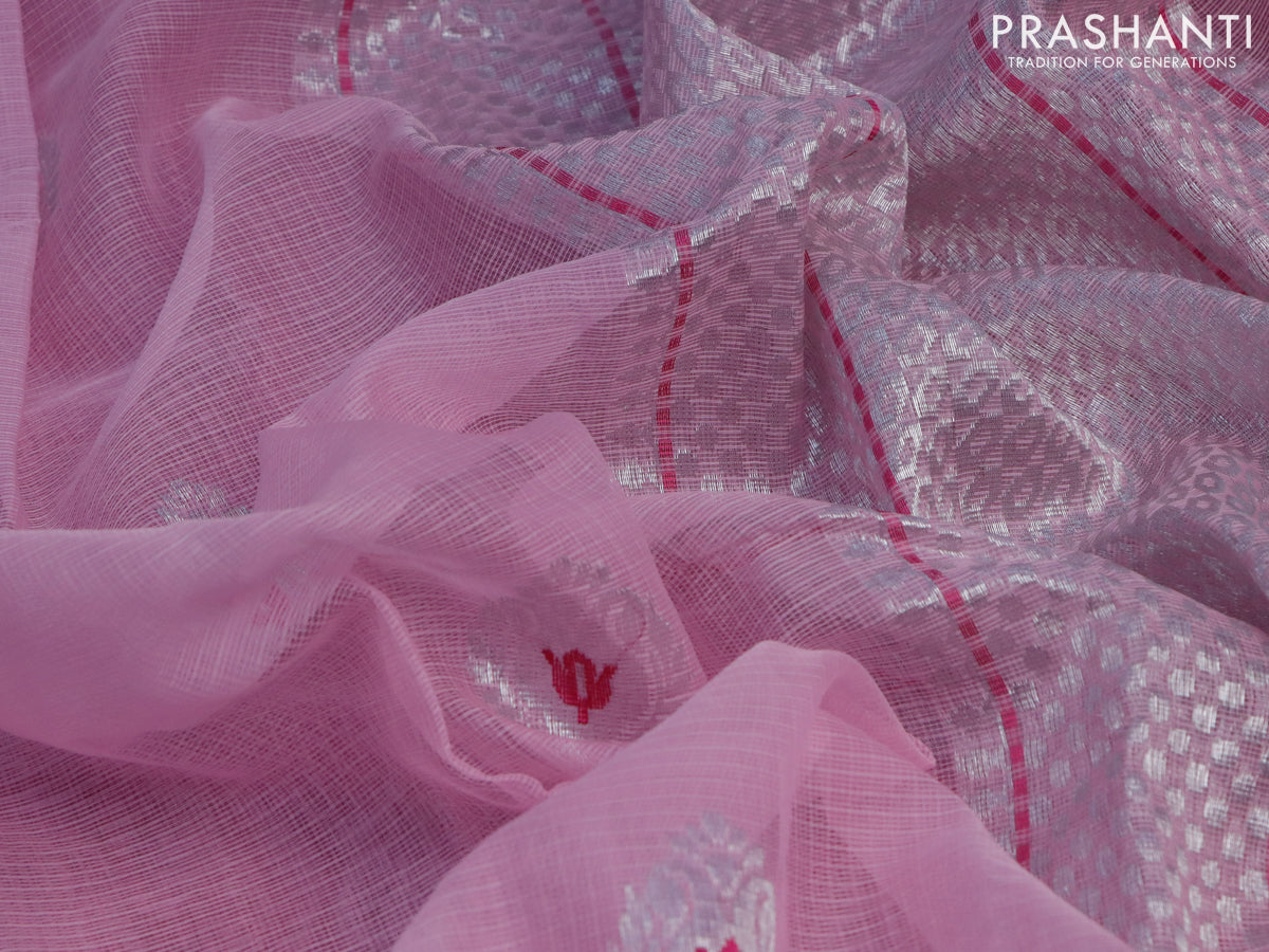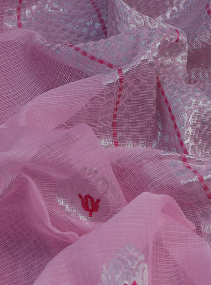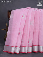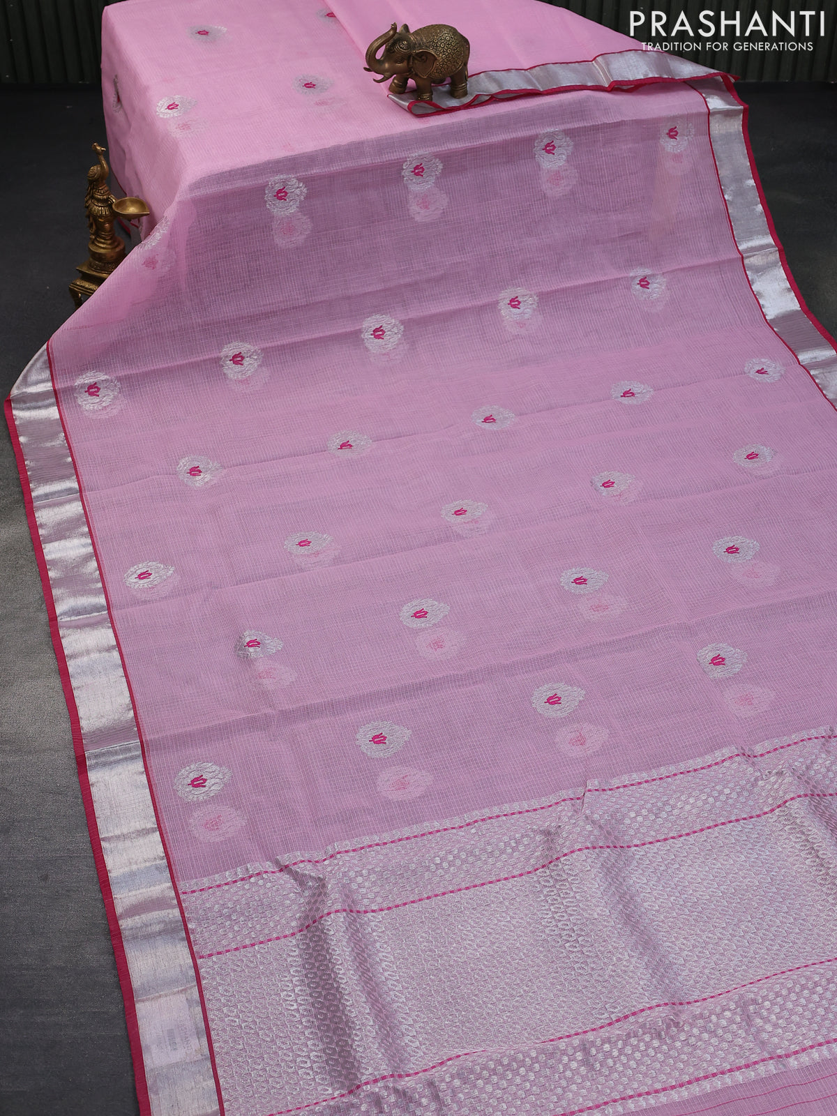 Pure zari kota saree pastel pink and pink with thread & silver zari woven buttas and silver zari woven border