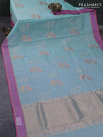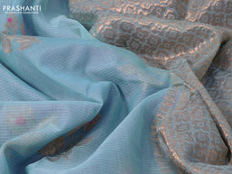Pure zari kota silk saree pastel blue and pink with floral zari woven buttas and rettapet zari woven border