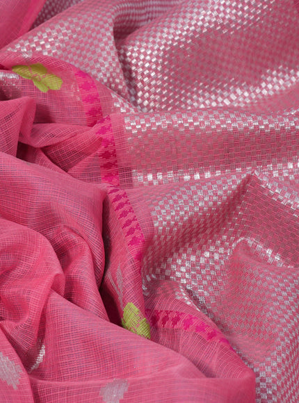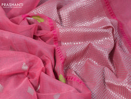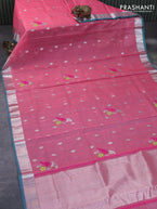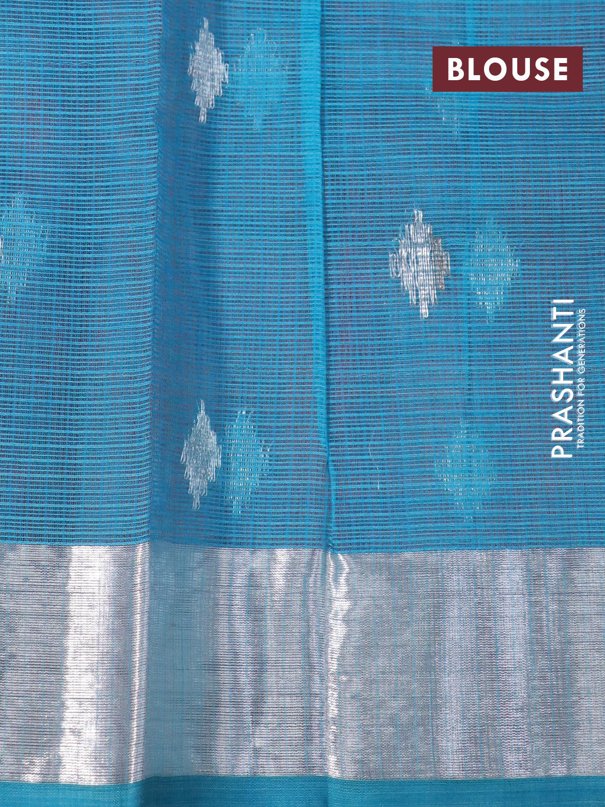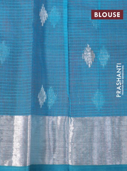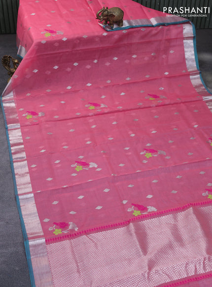 Pure zari kota silk saree peach pink and teal blue with thread & zari woven buttas and silver zari woven border