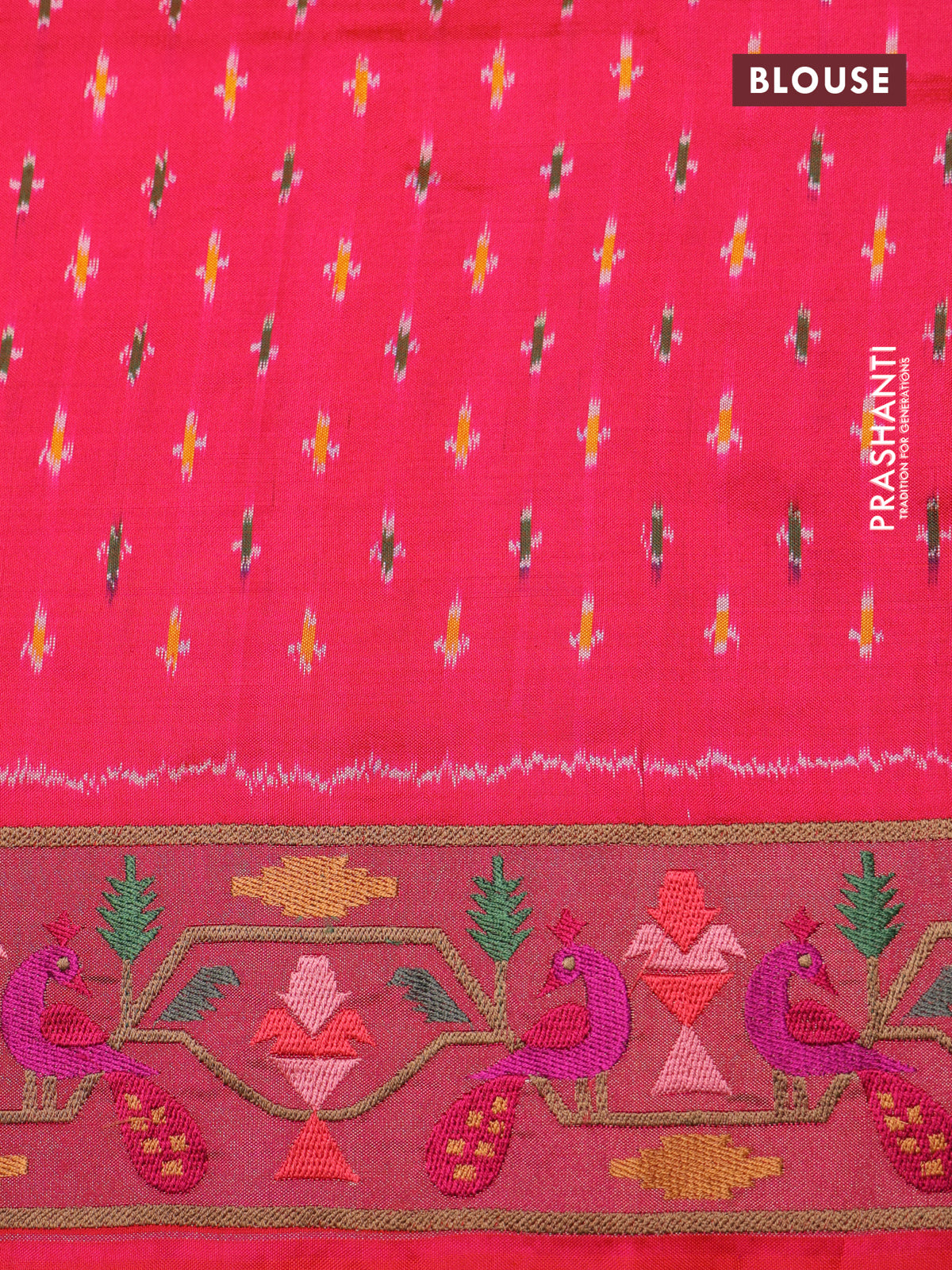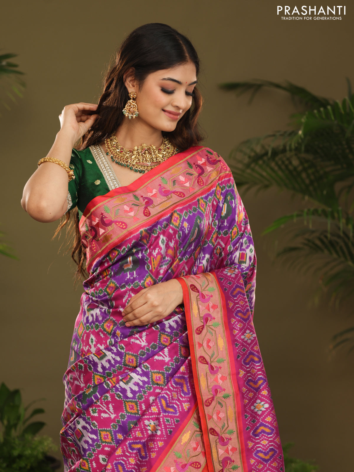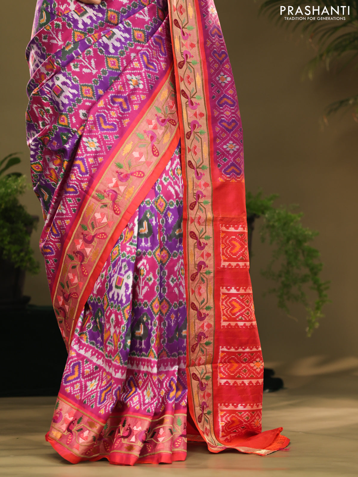 Purple & red kanchipuram silk saree with patola prints and border embroidery