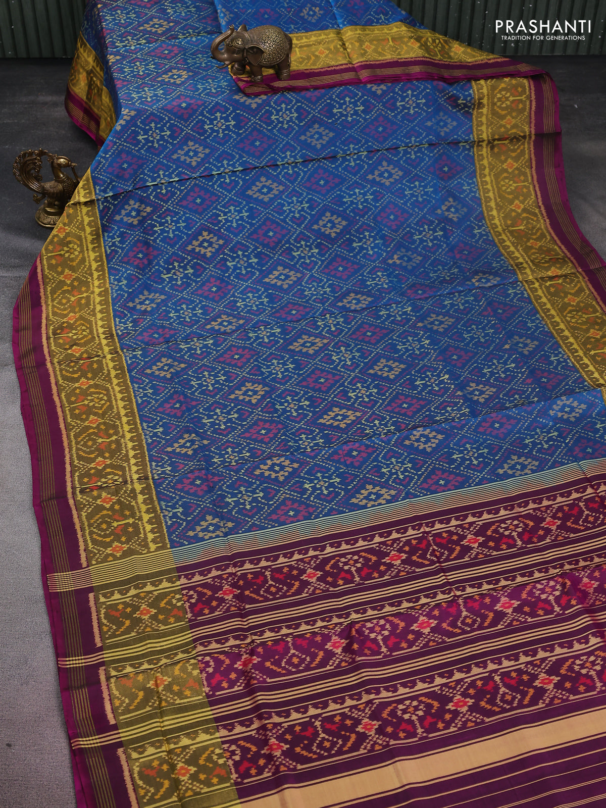 Rajkot patola silk saree cs blue and purple with allover ikat weaves and long zari woven border