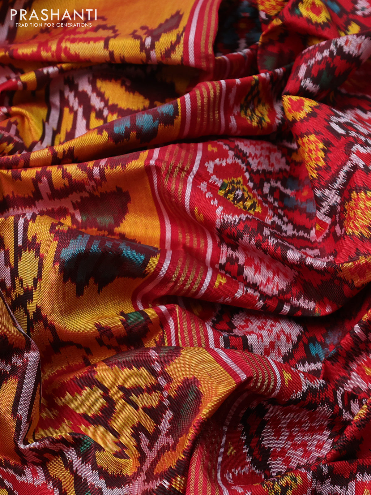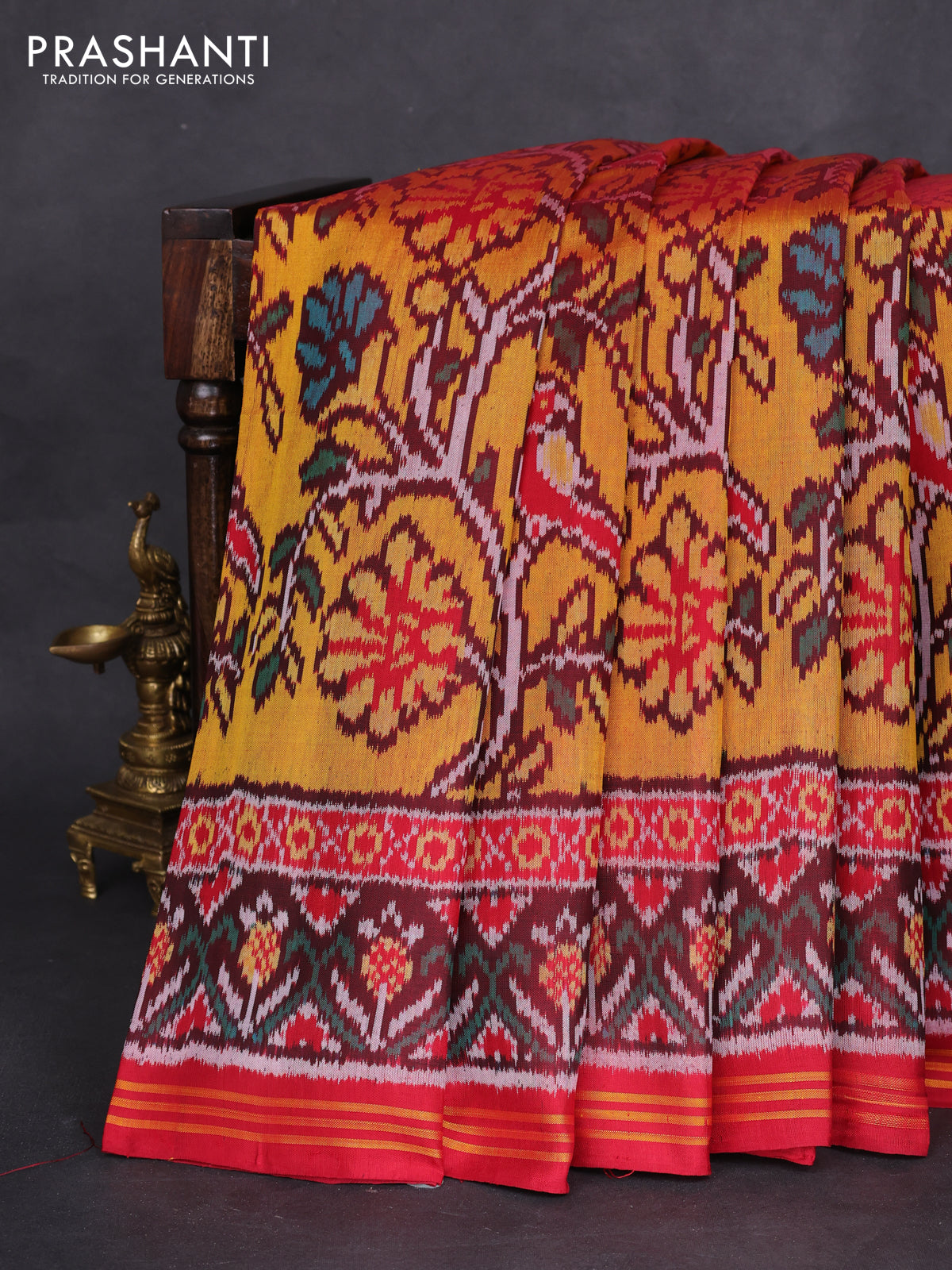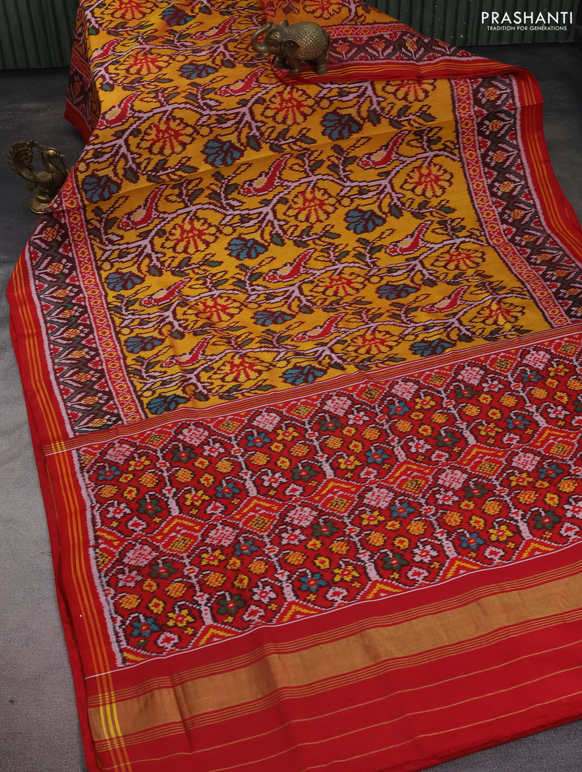 Rajkot patola silk saree yellow and red with allover ikat weaves and zari woven simple border