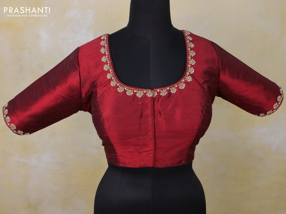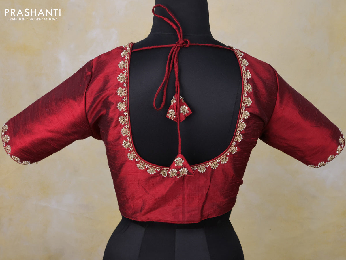 Raw silk readymade blouse maroon with zardosi work and back knot