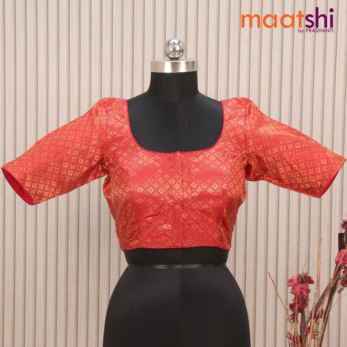 Readymade brocade blouse maroon with allover copper zari weaves and back knot
