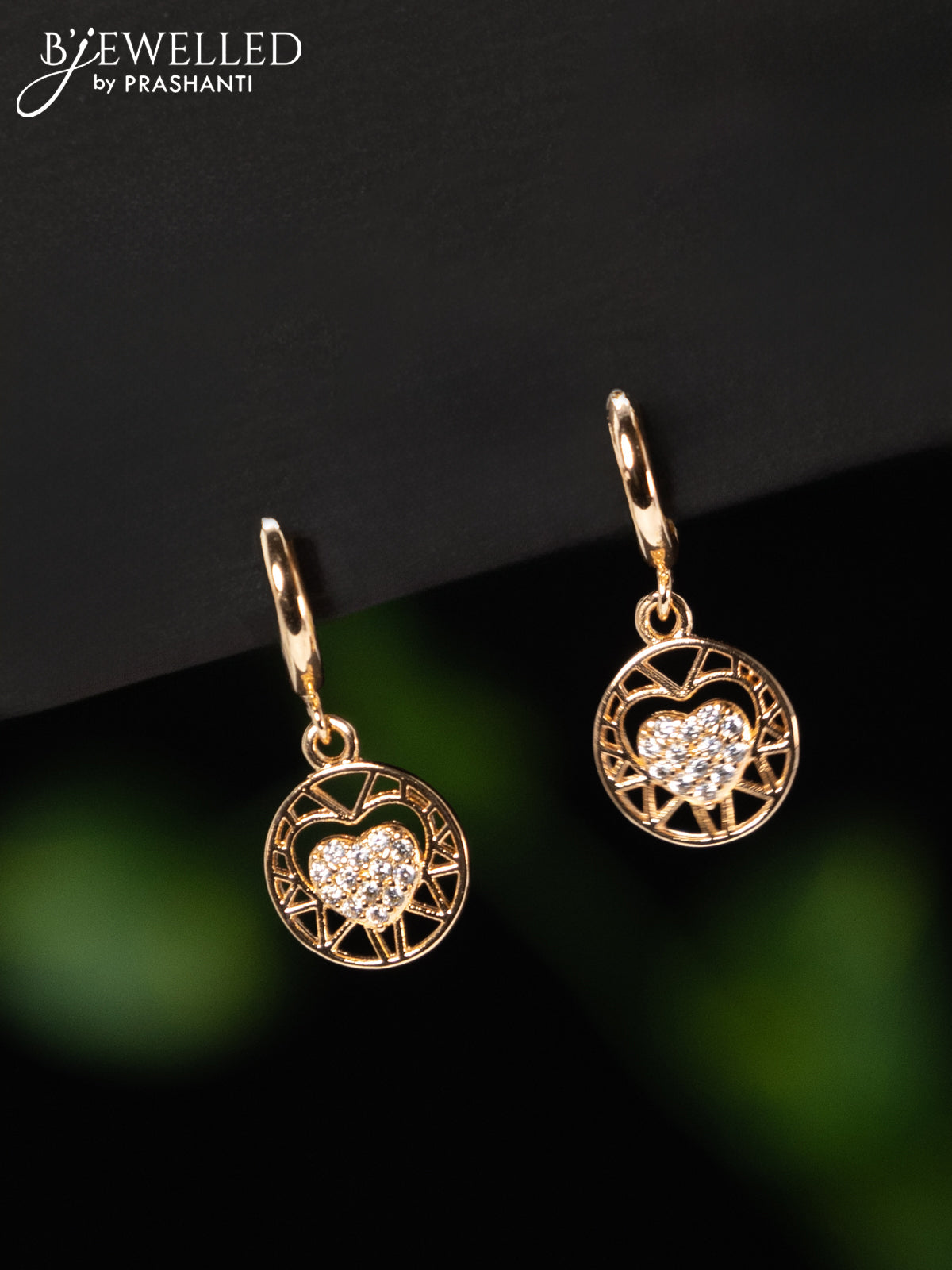 Rose gold hanging type earring with cz stones
