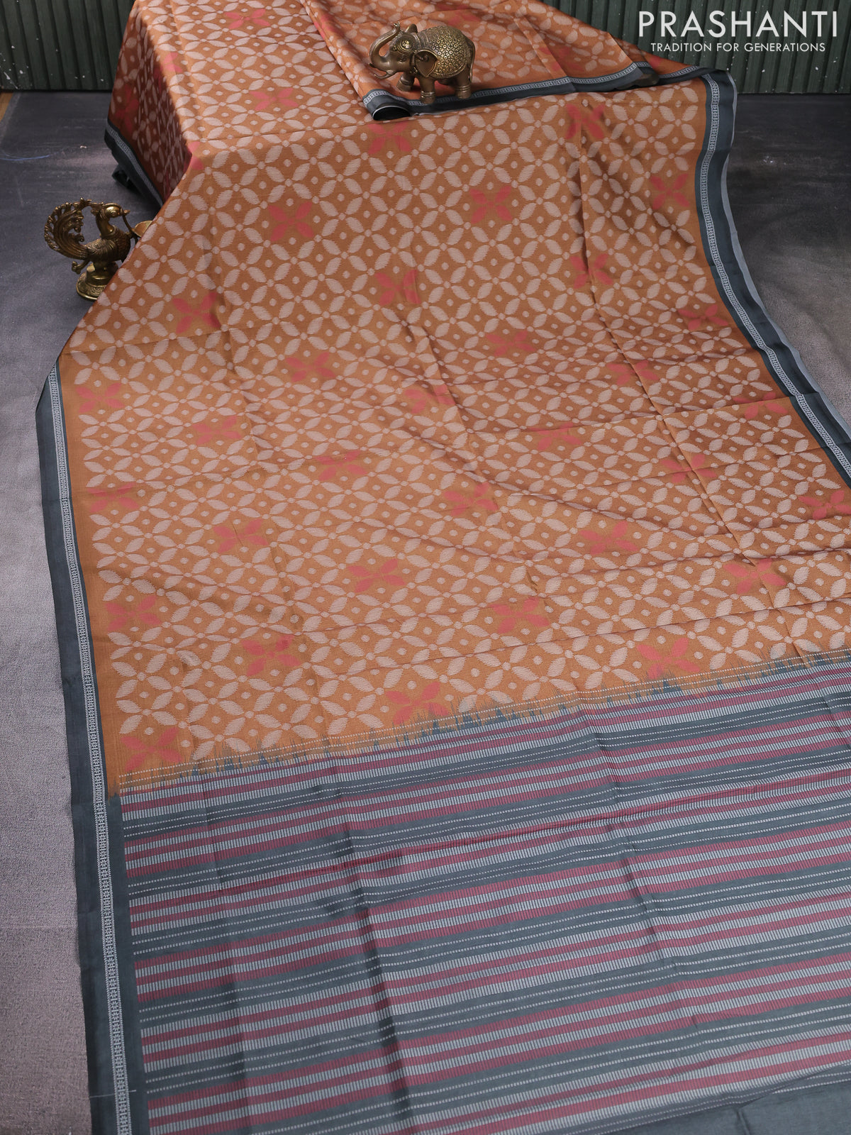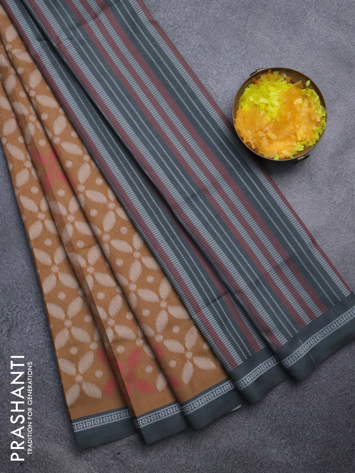 Sambalpuri semi silk saree dark mustard and elephant grey with allover ikat weaves and thread woven border