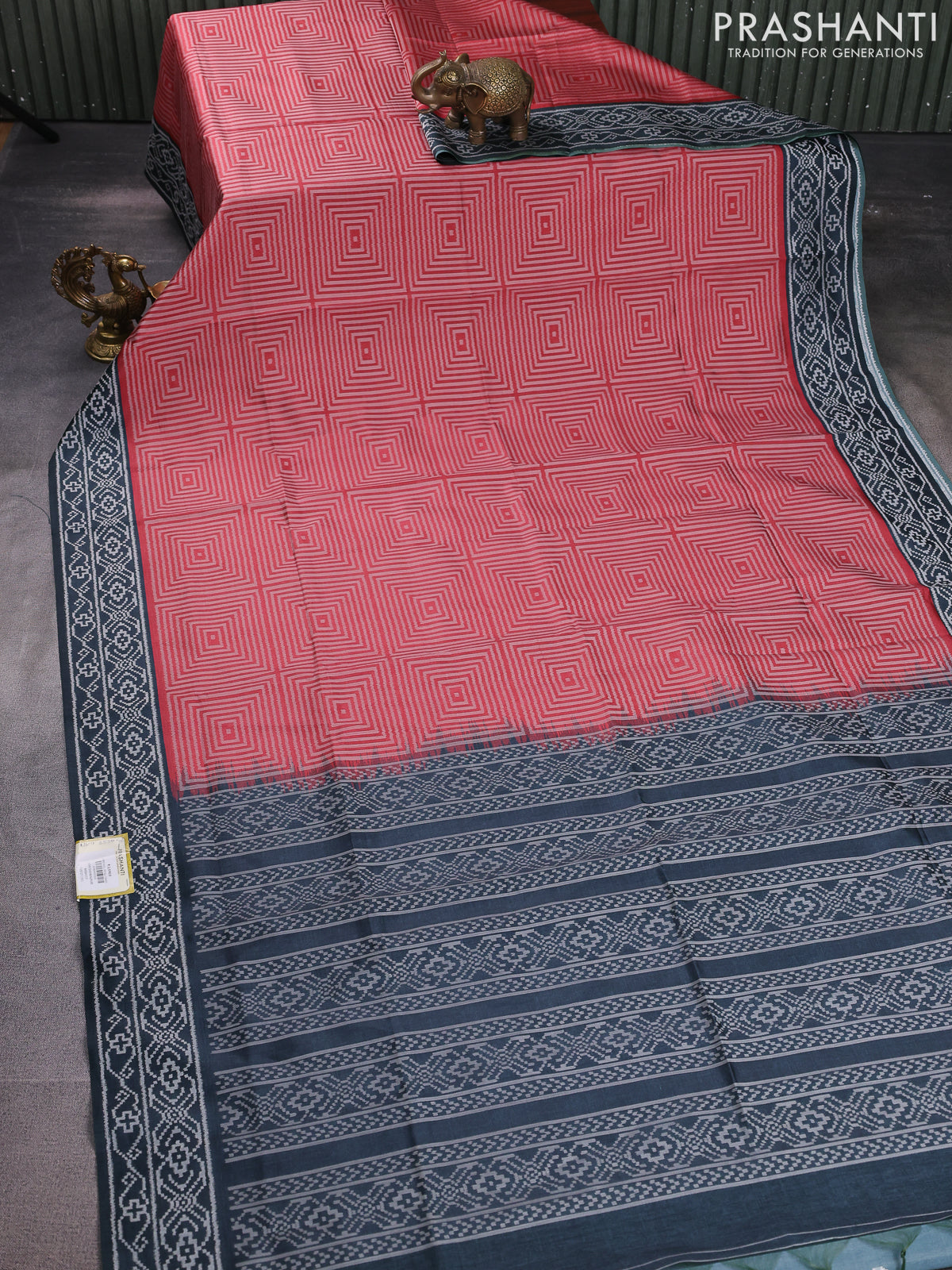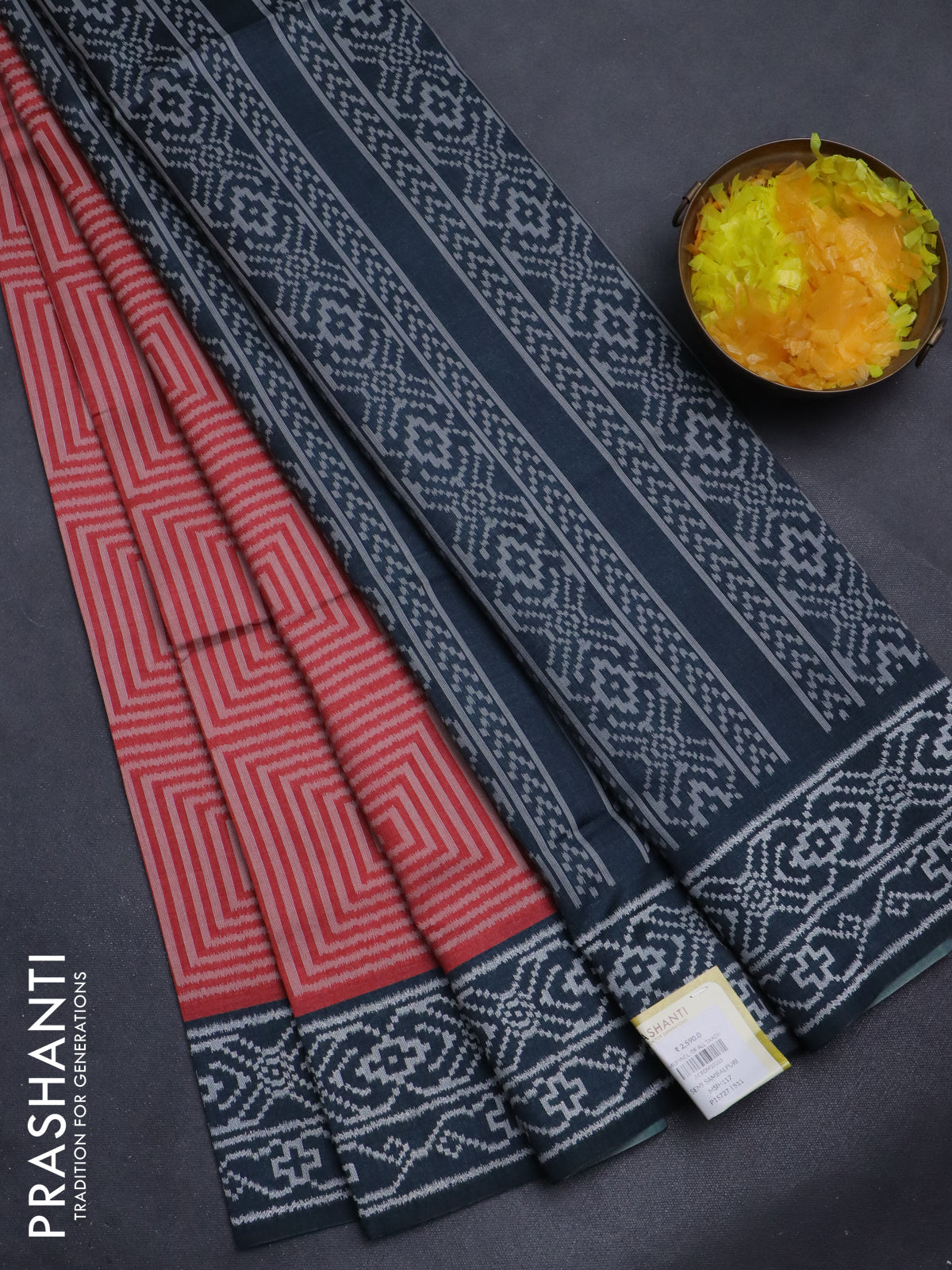 Sambalpuri semi silk saree rust shade and grey with allover geometric ikat weaves and thread woven border
