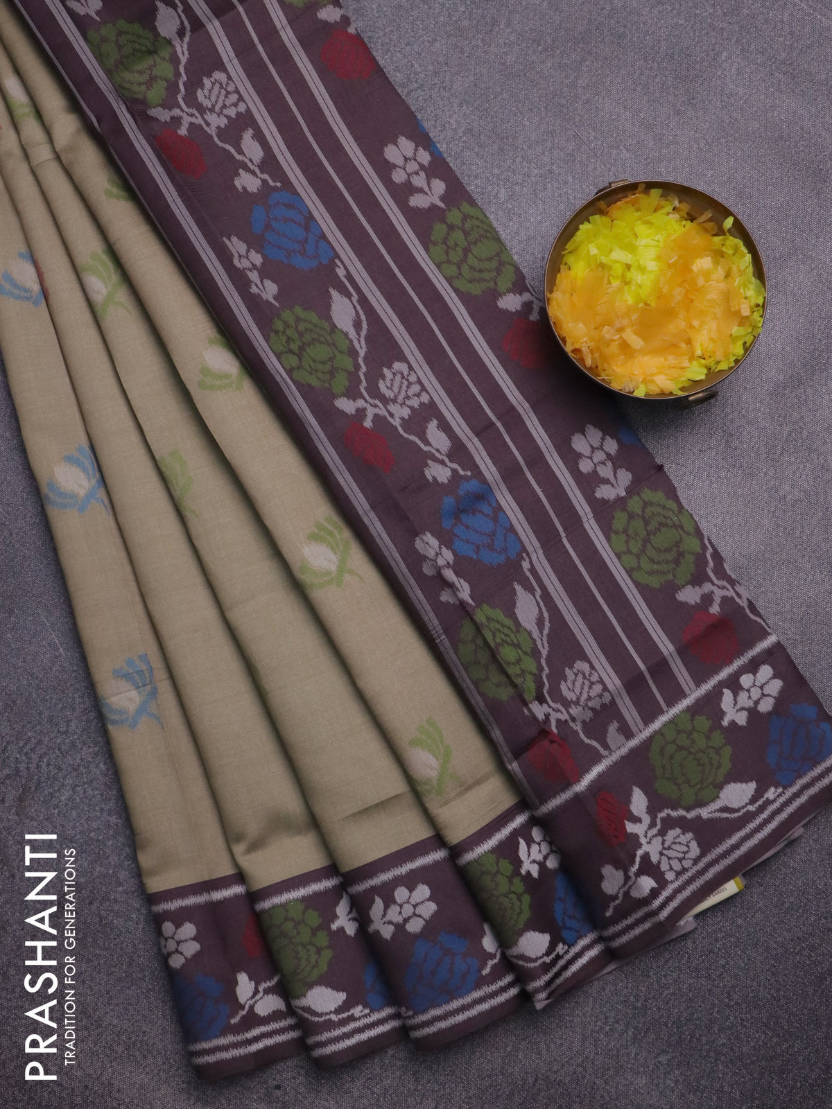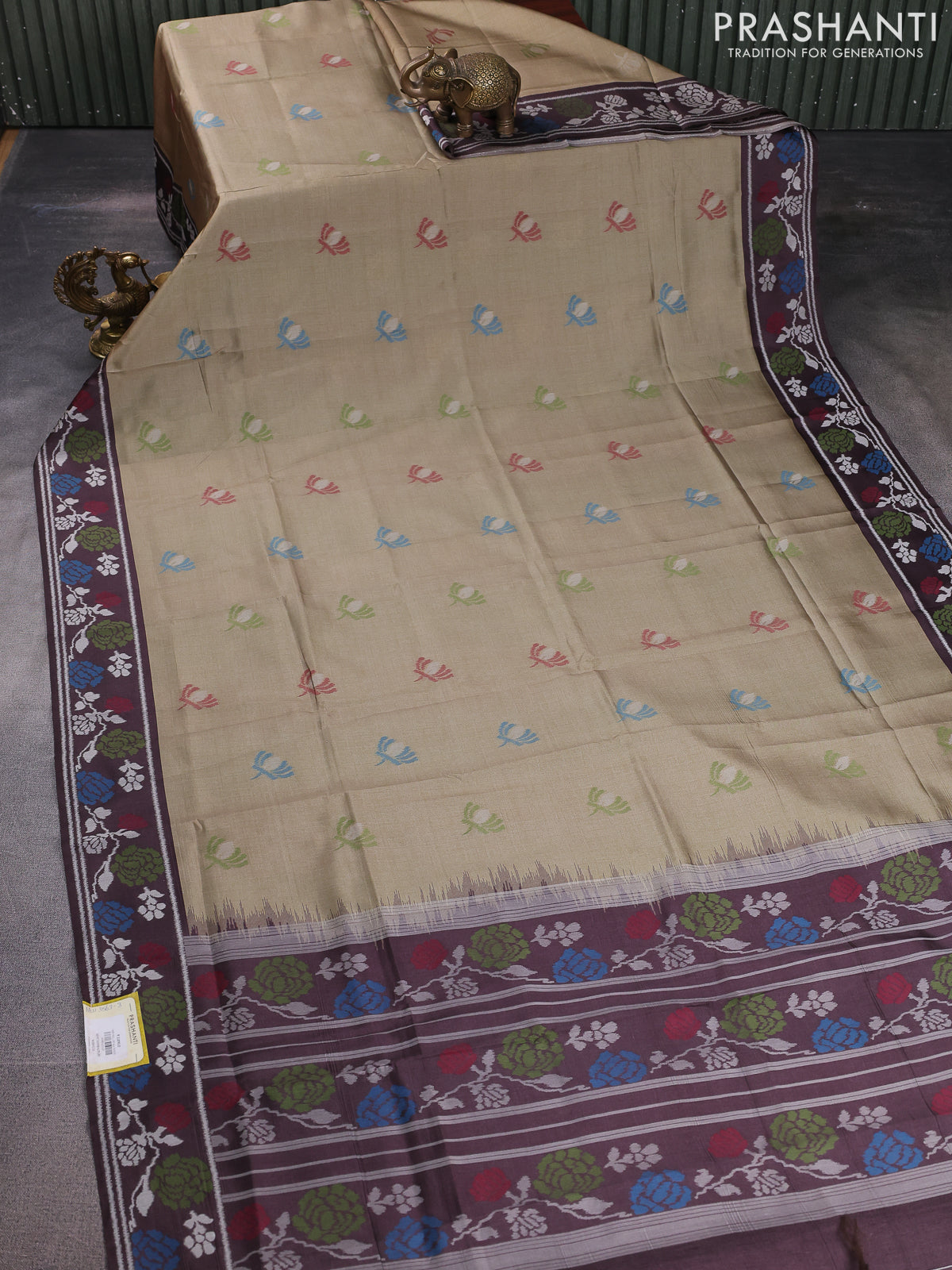Sambalpuri semi silk saree sandal and brown with ikat butta weaves and thread woven border