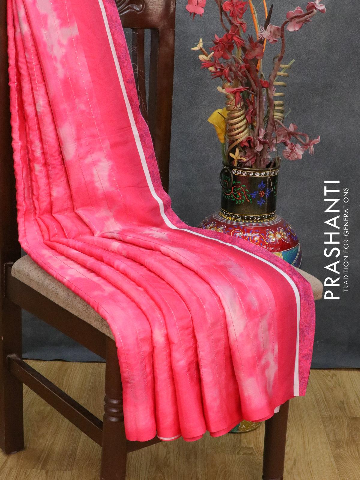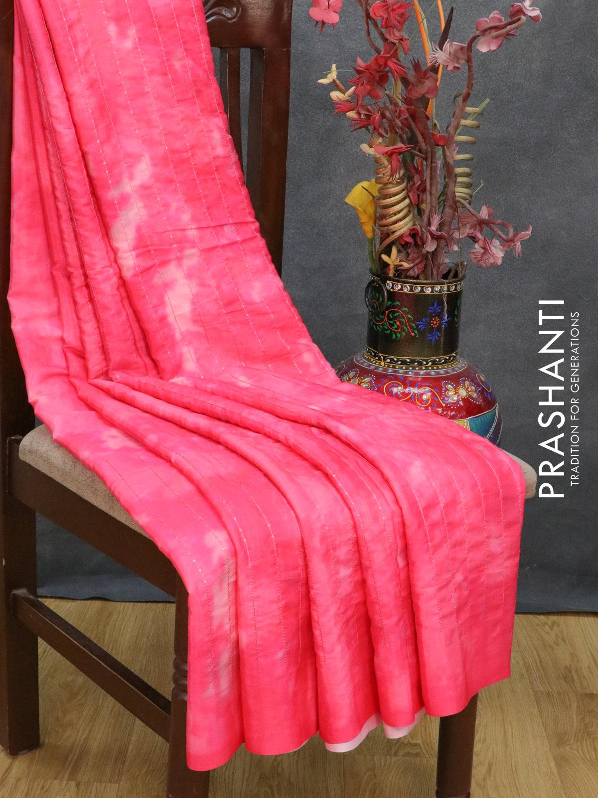 Satin crepe saree pink with tie & dye prints and sequence work