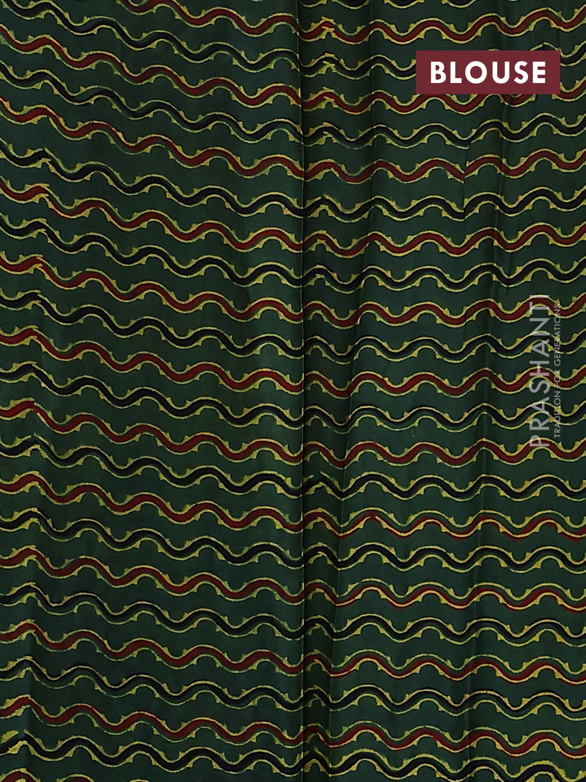 Satin crepe silk saree yellow and green with allover mirror work and ajrakh printed blouse