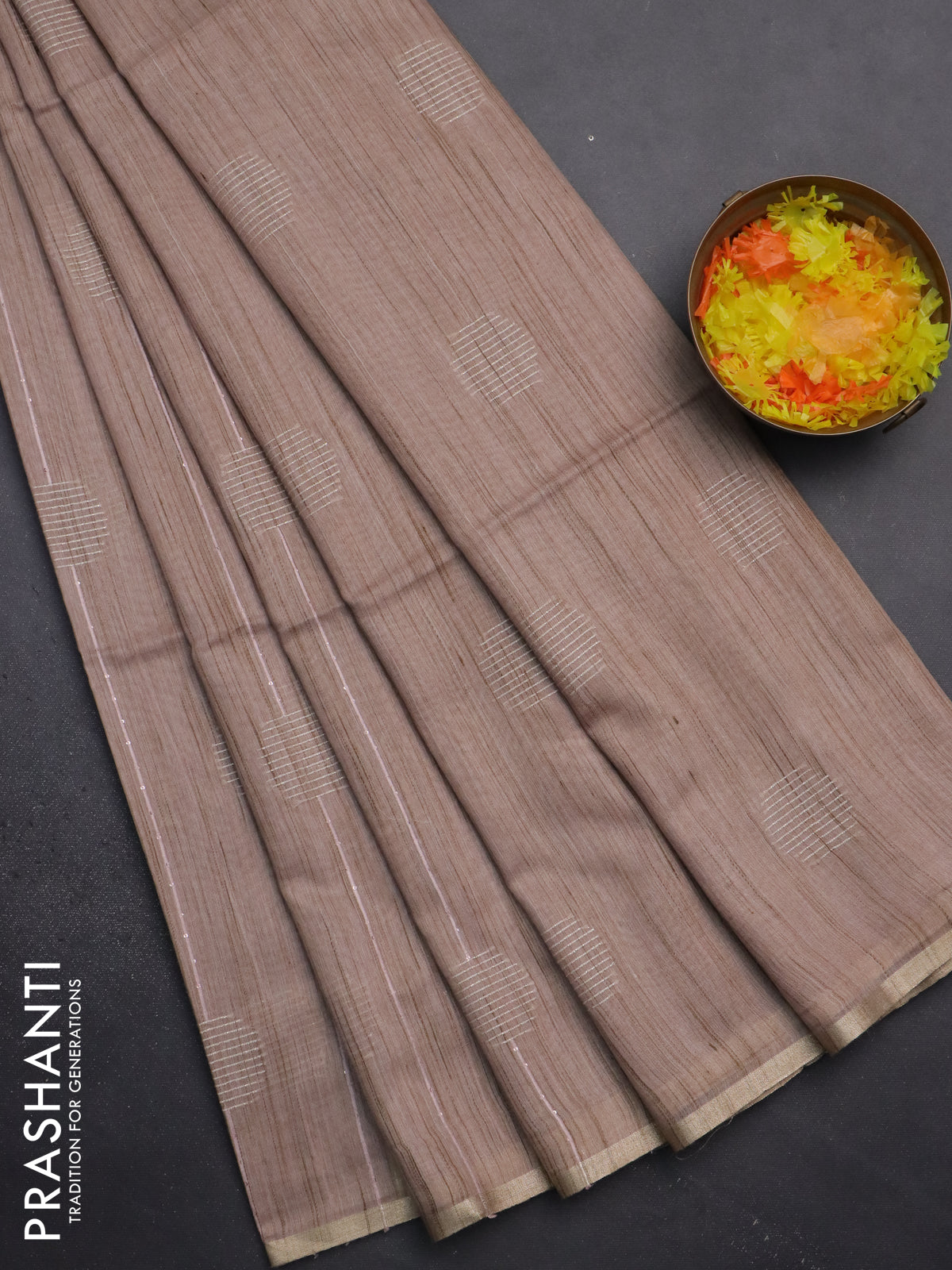 Semi bamboo saree beige with thread & sequin weaves and zari woven piping border