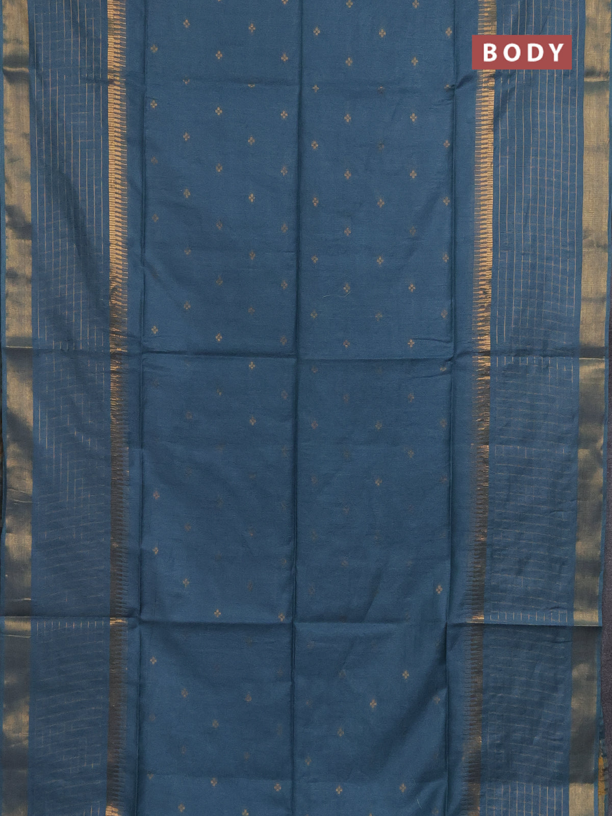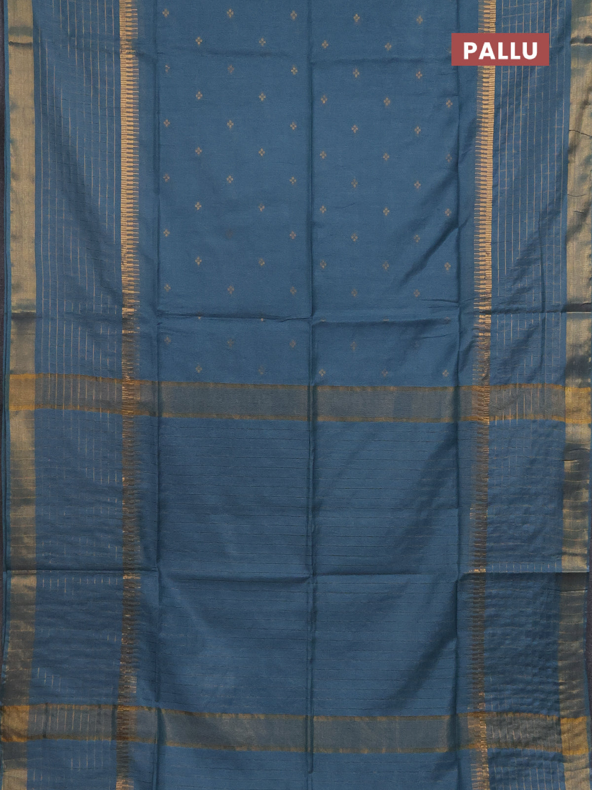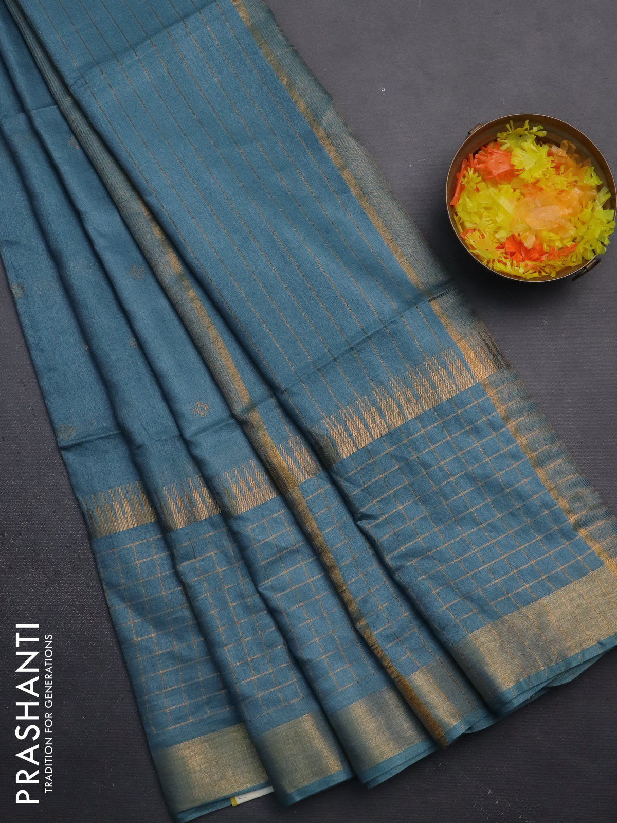 Semi bamboo saree blue shade with zari woven buttas and long zari checked border