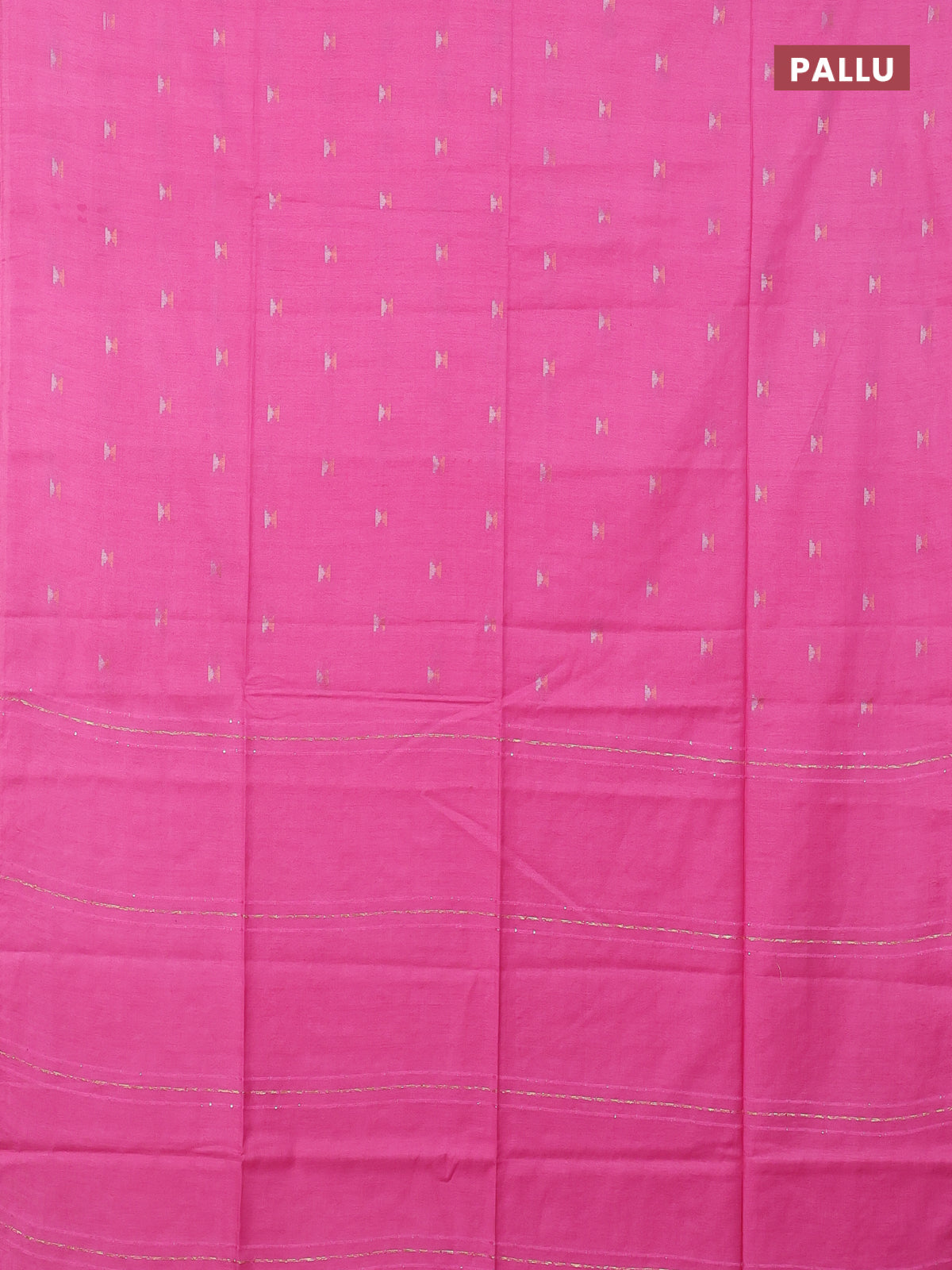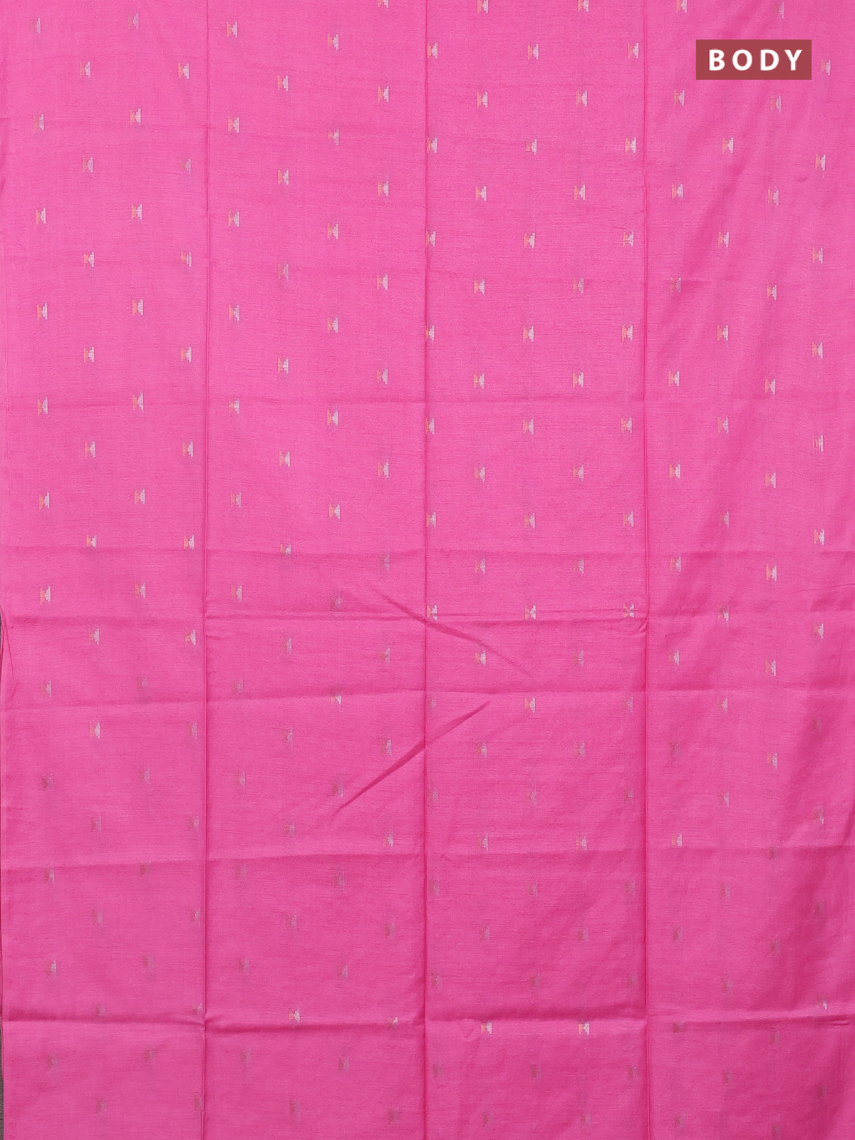 Semi bamboo saree candy pink with silver & copper zari buttas in borderless style